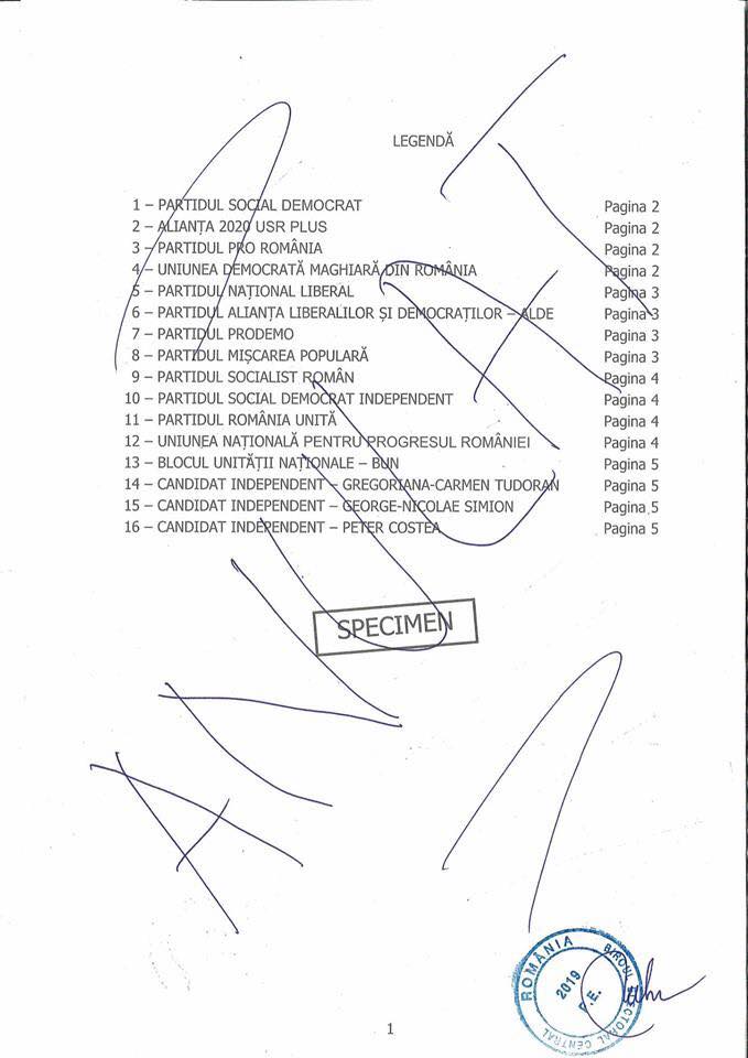 Unul va fi pentru alegerea europarlamentarilor. Vor exista 16 poziții: partidele și candidații independenți. Pentru ca votul să fie valid, ștampila trebuie pusă în chenarul ce prezintă opțiunea votantului.