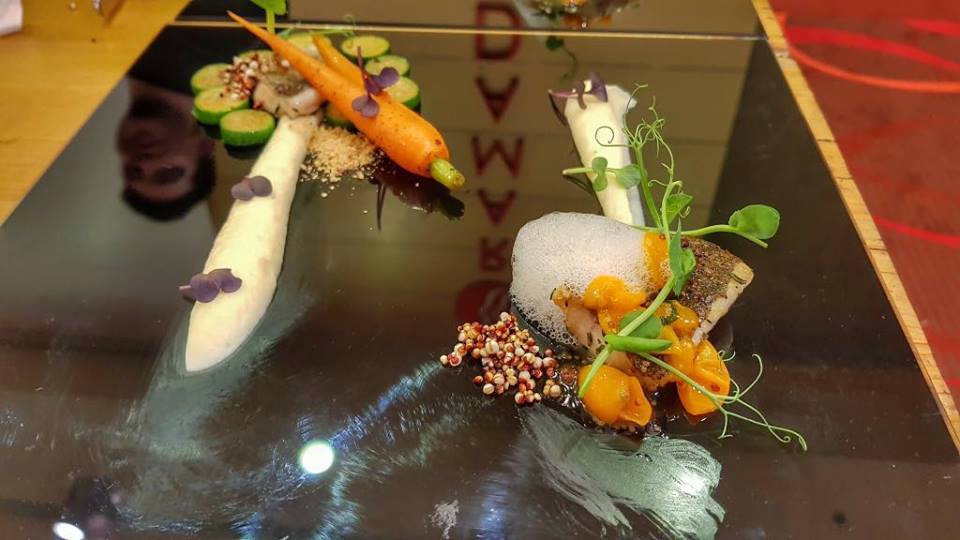 Cele două preparate calde care mi-au adus aurul au fost tot invenții proprii. Primul, păstrăv file cu piure de păstârnac cu vanilie și mascarpone, sos de physalis cu vin roșu și fructul pasiunii, spumă de grapefruit și pop corn de quinoa. Al doilea, tot cu păstrăv, bineînțeles, aromatizat cu cimbrișor și piper roșu, piure de țelină aromatizat cu salvie, sos de lămâie și vin roșu și perluțe de mazăre în pudră de mazăre cu cilli”, a explicat entuziasmată Nina Rus.