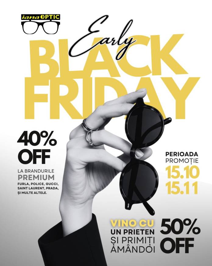 Early Black Friday la IANA OPTIC: REDUCERI de 40 la sută la rame de brand, cu stil! 50 la sută dacă sunteți doi