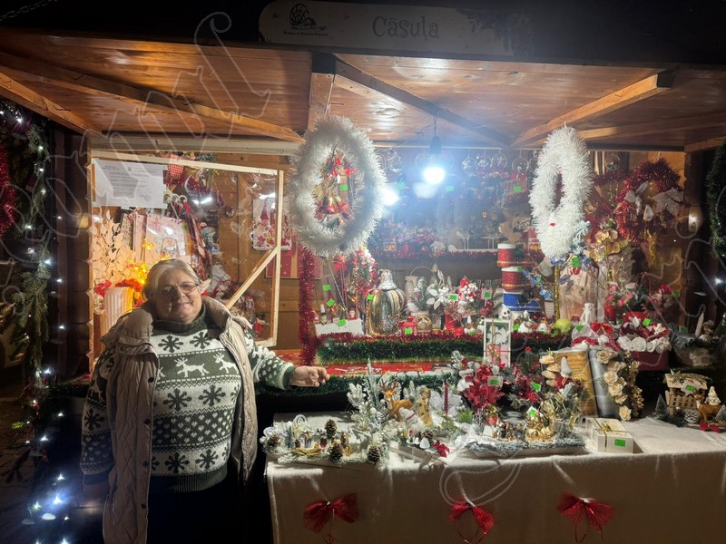 La Târgul de Crăciun din inima orașului, la căsuța „Povești de Iarnă” aveți ocazia s-o întâlniți și pe Elena Ivan în vârstă de 71 de ani. Lucrează zi și noapte pentru ornamentele de Crăciun menite să înveselească fiecare casă. Este originară din Valea Jiului, însă iubirea a adus-o acum câțiva ani în Bistrița, orașul care are i-a devenit acasă.