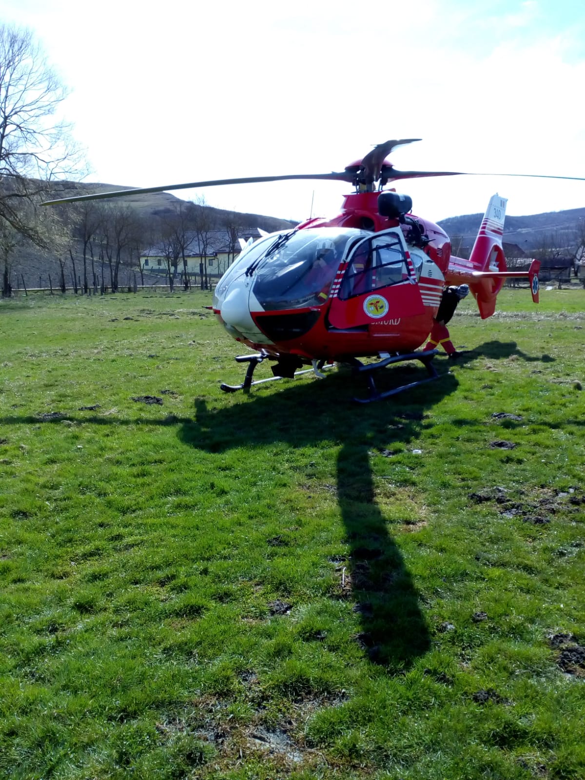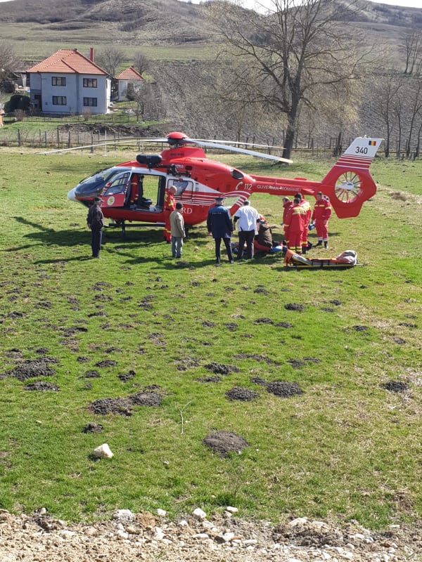 În sprijin a fost solicitat și un elicopter SMURD care să transporte de urgență victima la o unitate medicală de specialitate. Victima are 61 de ani.