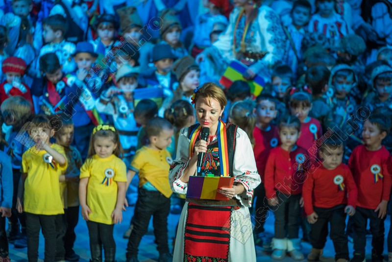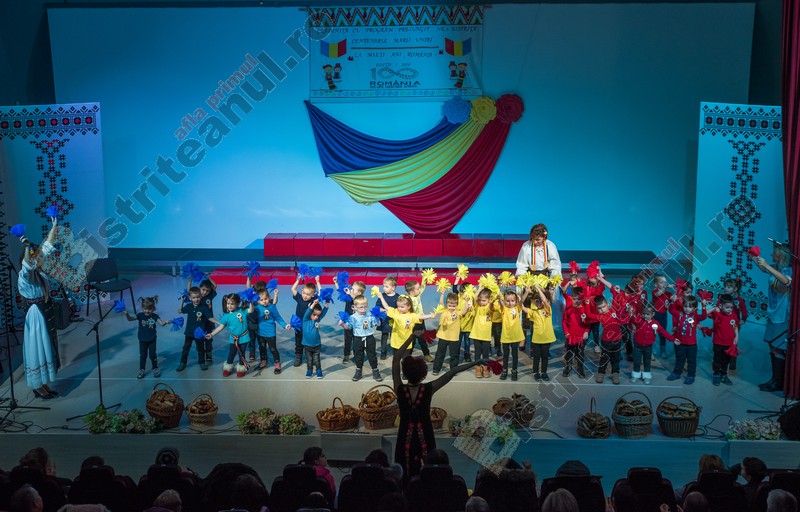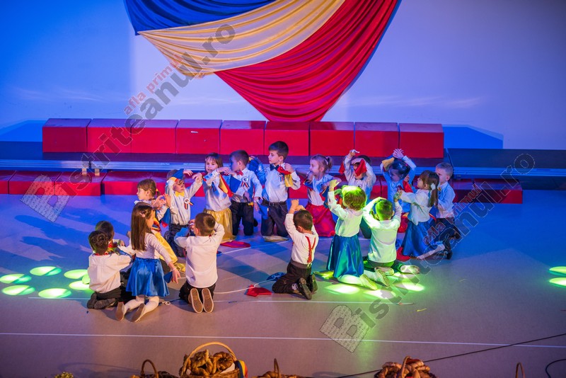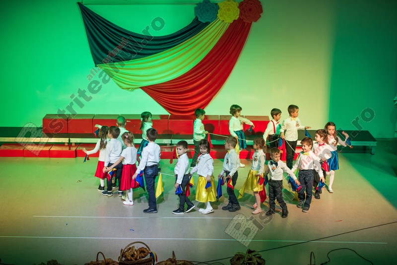 Programul a debutat cu intonarea Imnului Național al României. Apoi, pe scenă, începând cu grupele mici, fiecare și-a demonstrat dragostea de țară prin cântec, scenete sau jocuri.