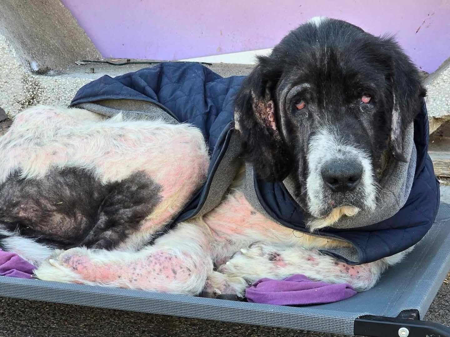 A ajuns la adăpost speriat, slăbit și diagnosticat cu demodex, o umbră a uriașului blând care este astăzi.