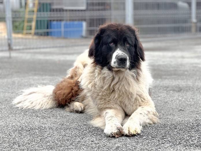 A ajuns la adăpost speriat, slăbit și diagnosticat cu demodex, o umbră a uriașului blând care este astăzi.