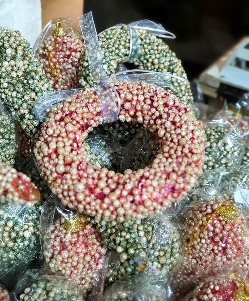 Chiar și globurile sunt unicat, iar aranjamentele au fiecare câte o poveste: o poveste de iarnă, cu ulița copilăriei și oamenii de zăpadă, cu ieslea sau colindătorii….