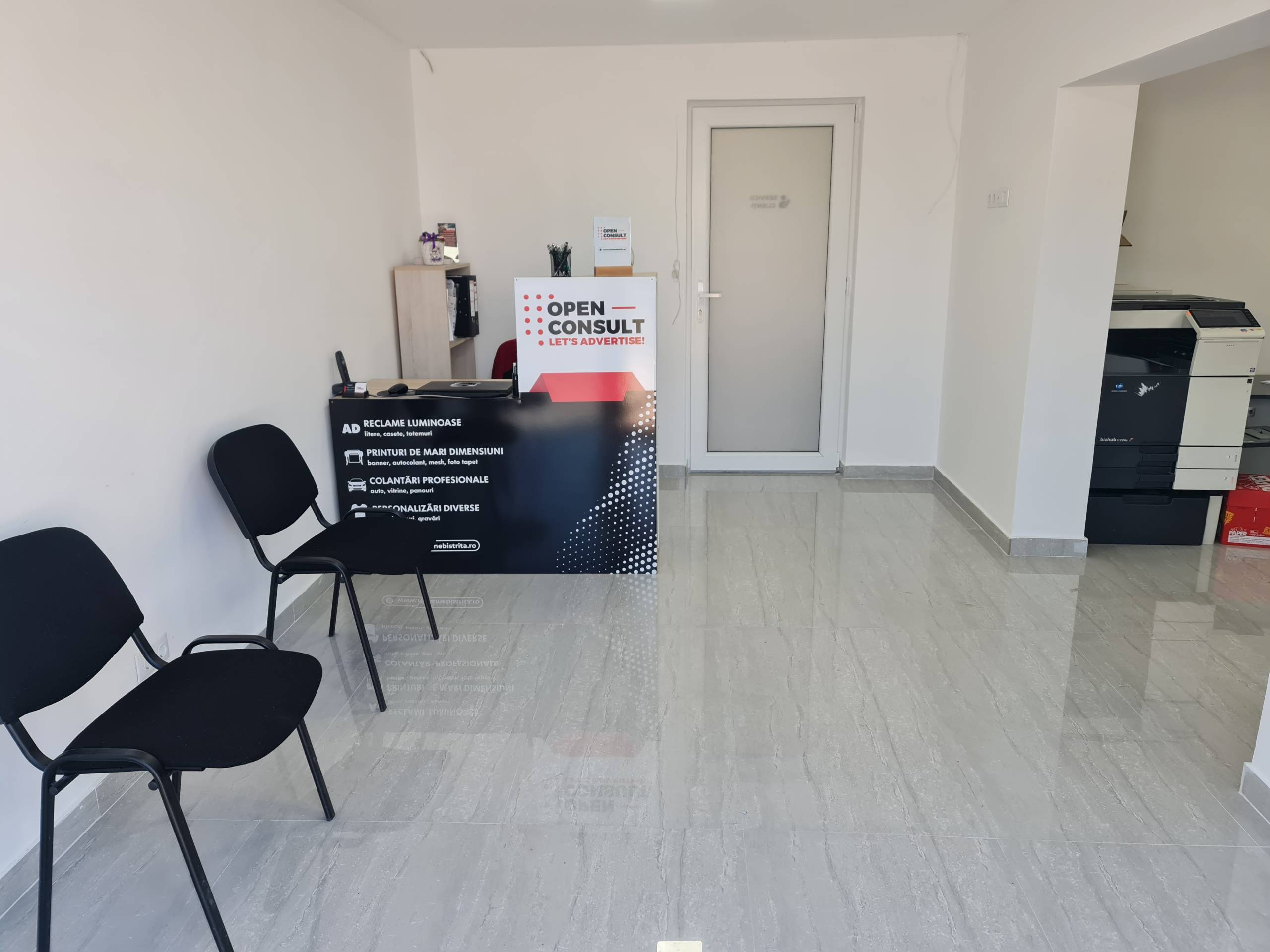 Începând din această lună, Fabrica de Reclame – Open Consult s-a mutat în casă nouă, în sediul propriu, situat în Viișoara, strada Calea Dejului nr 4 (DN17), după benzinăria Best Oil. Acest lucru a fost posibil în urma unei investiții care s-a întins pe 4 ani.