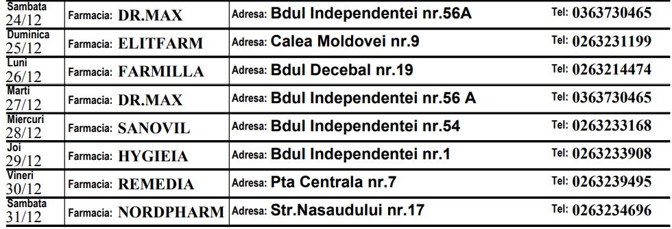 Farmaciile de gardă vor fi deschise în intervalul orar 08:00-24:00.