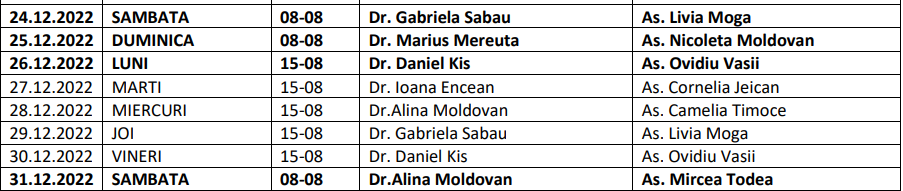 În perioada sărbătorilor de iarnă, asistența medicală din partea farmaciilor și centrelor de permanență continuă inclusiv de Ajun și în ziua de Crăciun.