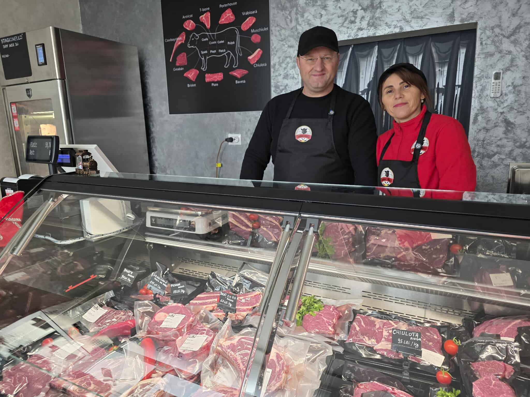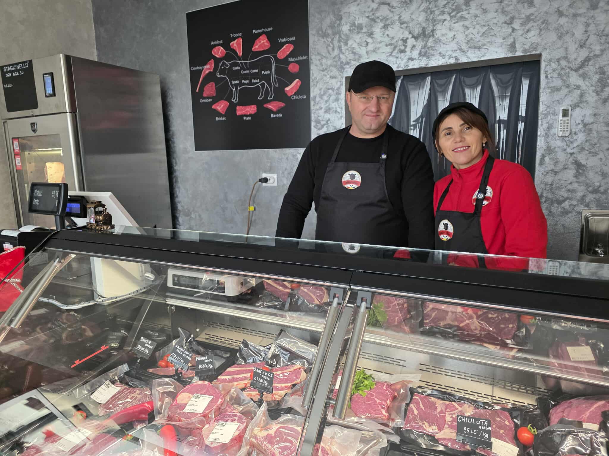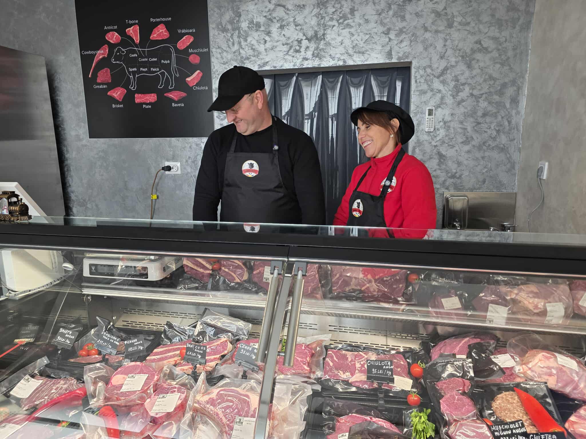 După 10 ani de muncă asiduă în ferma de Black Angus de la Ocnița – comuna Teaca, Cristi și Ionela Bugnar își văd visul cu ochii: în sfârșit au reușit să închidă lanțul de producție odată cu deschiderea primului lor magazin de prezentare – ROYAL ANGUS, în Bistrița, pe str. Lalelelor. Au muncit mult și din greu până au ajuns aici, dar astăzi îi așteptă cu emoție pe bistrițeni să încerce carnea lor de vită, una premium, Black Angus de Teaca – așa cum spun, cu mândrie. În magazin veți da chiar de ei, pentru că și magazinul este ca și ferma, o afacere mică, de familie.