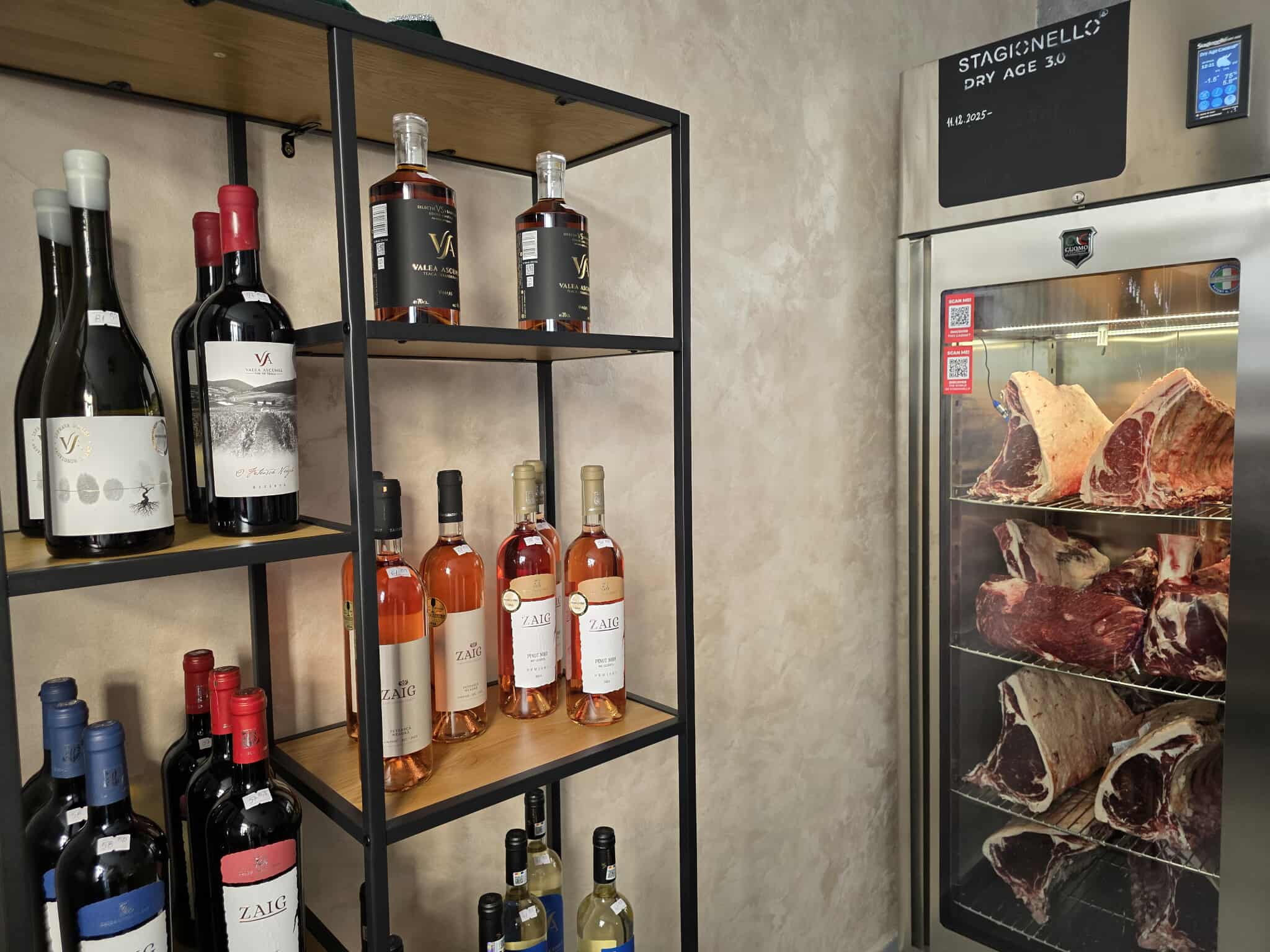 Veți găsi la ei antricot de Angus cu sau fără os, bavetă, capac/top side Angus, chiulotă și coada chiulotei de Angus, mușchi diafragmatic, oase cu măduvă, rasol, T Bone Angus, coaste de Angus, rasol nemțesc Angus, rasol alb Angus, oase pentru supă, Tomahawk Angus, vrăbioară cu os sau nucă de Angus, coadă, Picanha, Brisket, carne de lucru sau pentru gulaș, ceafă, gât cu os, burgeri și șnițele. Este și o vitrină pentru maturarea cărnurilor, astfel încât și cei mai pretențioși clienți să fie mulțumiți. Evident, nu puteau să lipsească vinurile de Teaca, care se asortează perfect cărnii de vită premium de Angus.