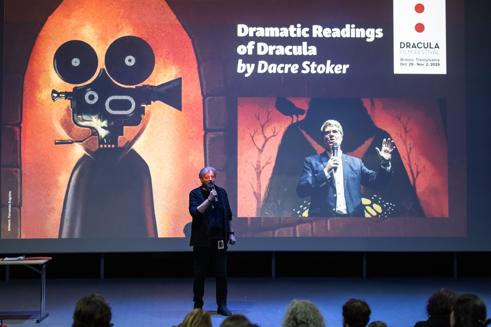 La ediția din acest an a Dracula Film Festival, a participat și Dacre Stoker, descendendul lui Bram Stoker.