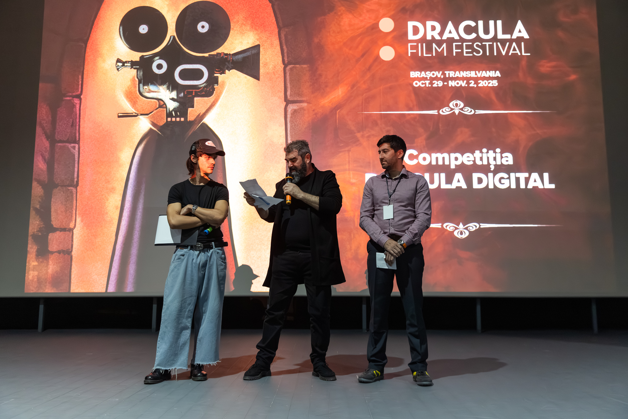 Alături de mine, în juriu, au mai fost Eugen Neagu și Bogdan Iancu. Dracula Film Festival se adresează tinerilor între 16 și 29 de ani. Filmele care se înscriu în competiție sunt de fapt scurtmetraje, de câte trei minute, filmate cu telefonul. Acrestea pot fi horror, SF, thriller. Din toate câte se înscriu, se aleg șase filme. Cinci le alegem noi, juriul, și unul e ales de public, de pe platformele unde pot fi vizionate scurtmetrajele.