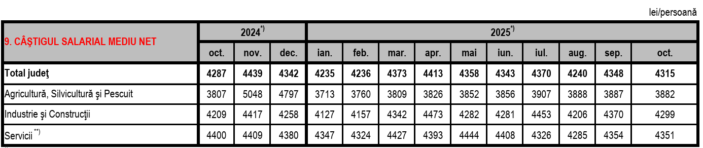 Astfel, la final de octombrie lucrau cu 24 persoane mai puține față de luna anterioară şi cu 369 persoane peste nivelul lunii corespunzătoare a anului 2024.