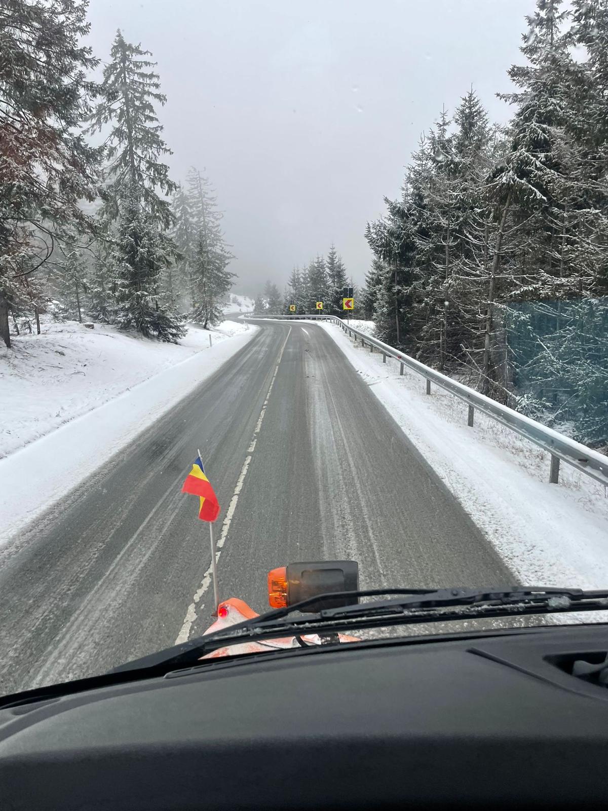 În această dimineață a fost nevoie de intervenția utilajelor care să împrăștie antiderapant pe drumurile naționale.