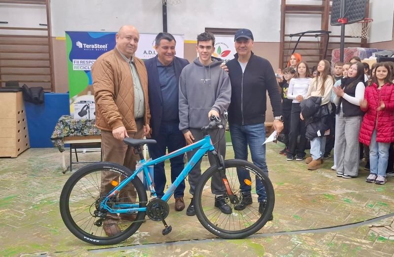 Școala Gimnazială nr. 4 din Bistrița a adunat 1,5 tone de deșeuri reciclabile. Bicicleta a fost câștigată de elevul Isac Muzur cu 850 kg.