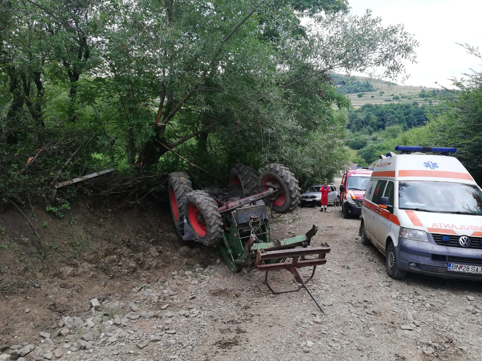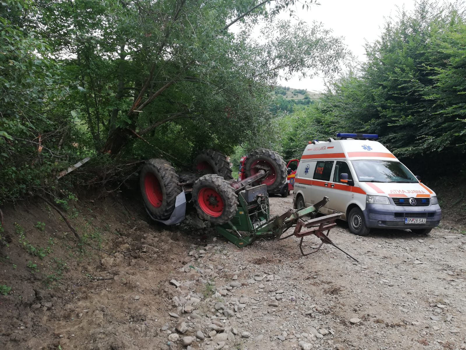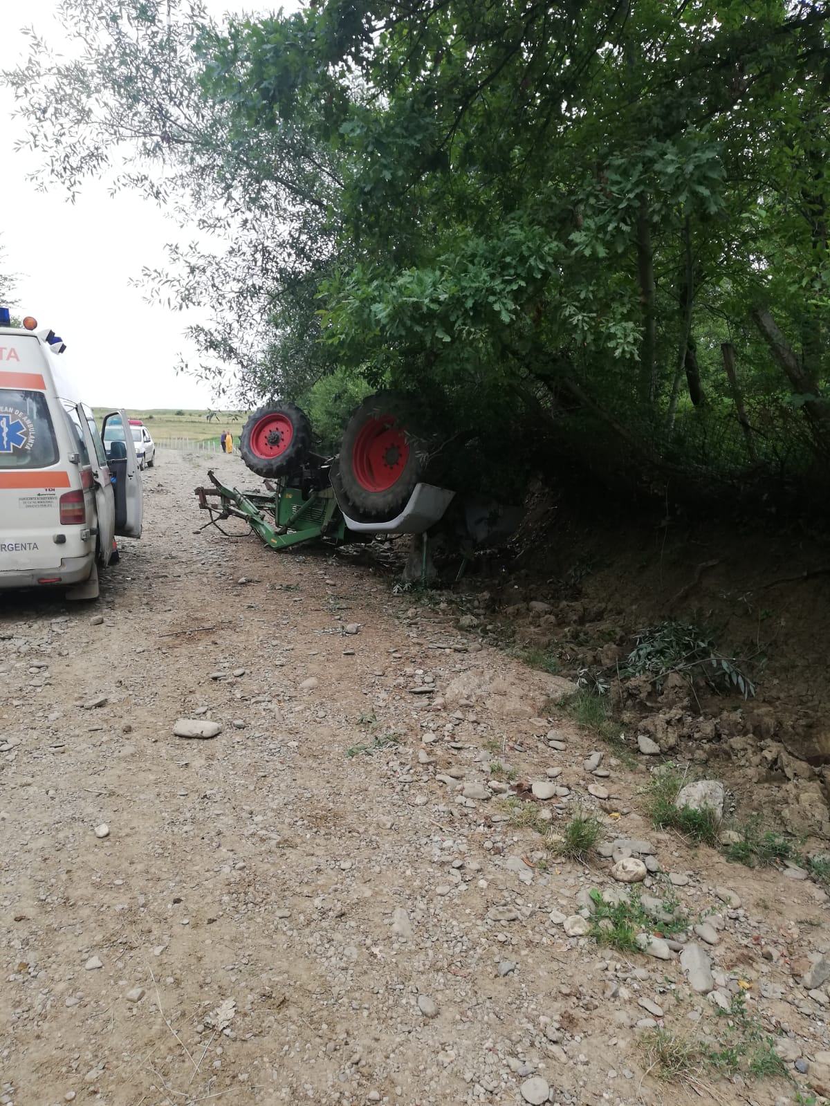 FOTO: A avut zile! O femeie a scăpat cu viață, după ce tractorul s-a răsturnat peste ea