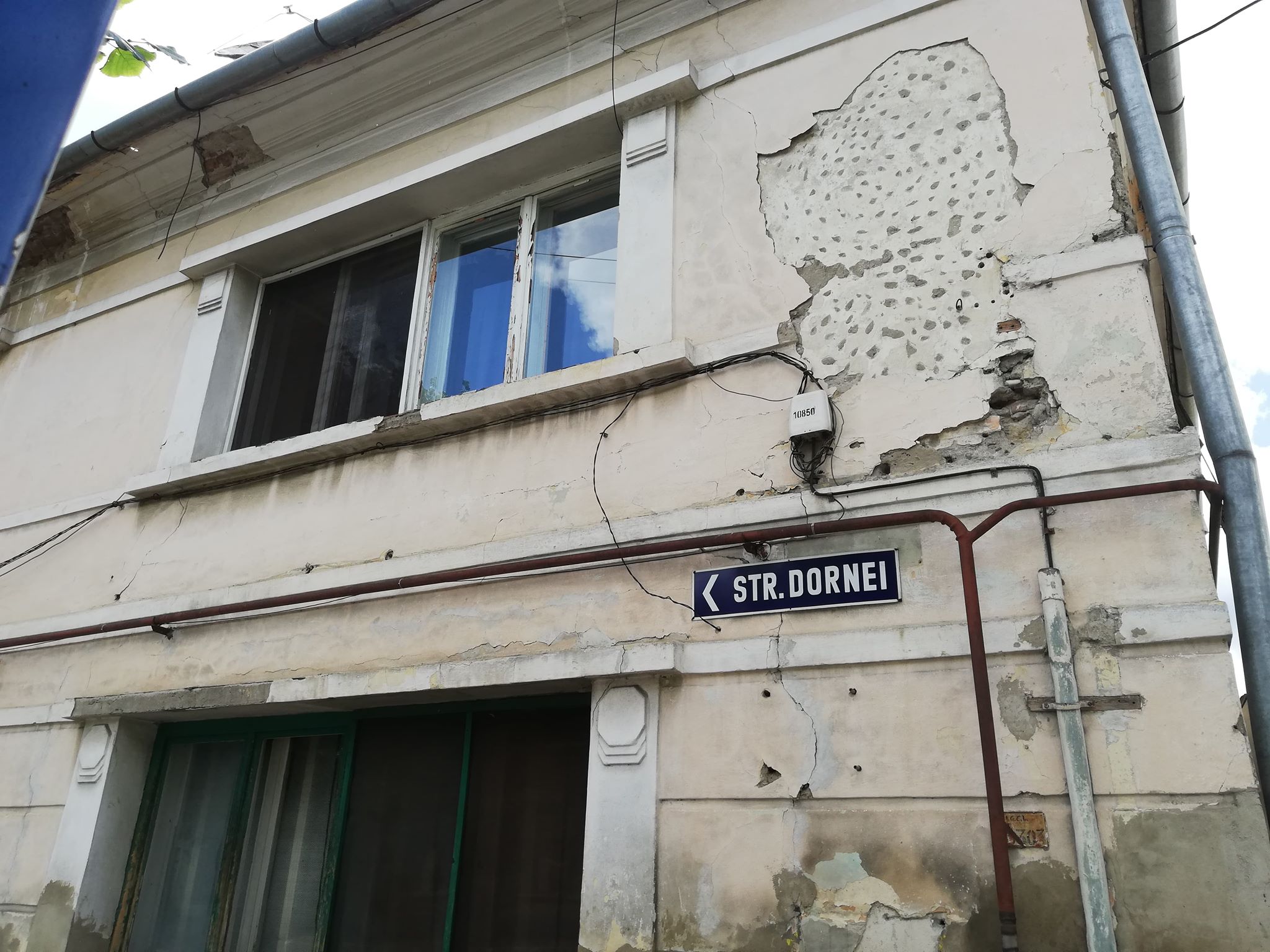 Doar că acesta nu a fost singurul pericol ce s-a ivit. De pe clădirea aflată la intersecția străzilor Dornei cu Barbu Ștefănescu Delavrancea au început să cadă bucăți din tencuială.