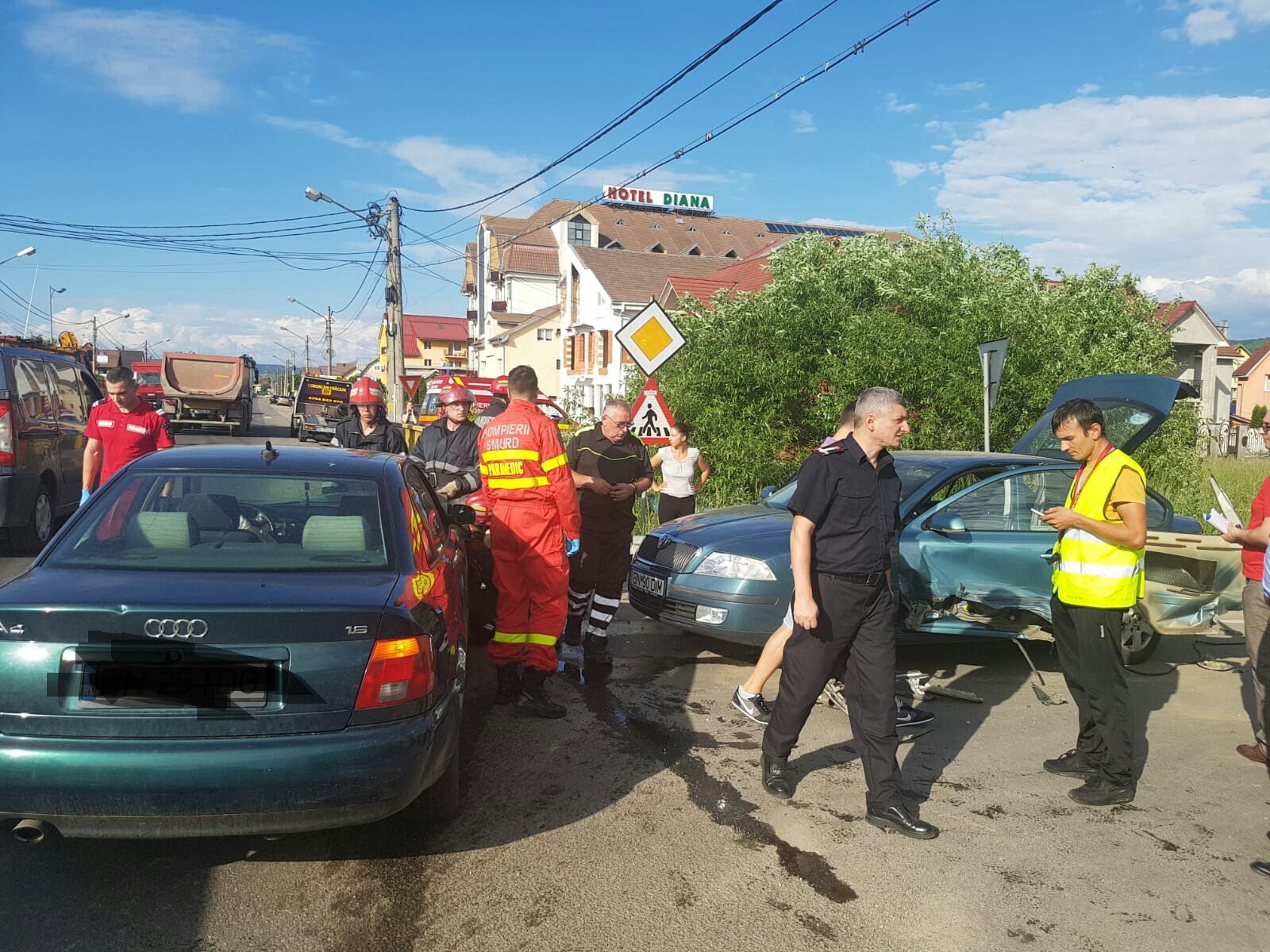 „5 persoane sunt implicate (trei adulți și doi copii). O femeie acuză dureri ușoare și atac de panică și a fost preluată de Echipajul de Prim Ajutor SMURD pentru evaluare. Nu se impune transportul acesteia la spital”, a declarat purtătorul de cuvânt al ISU Bistrița, Marius Rus.