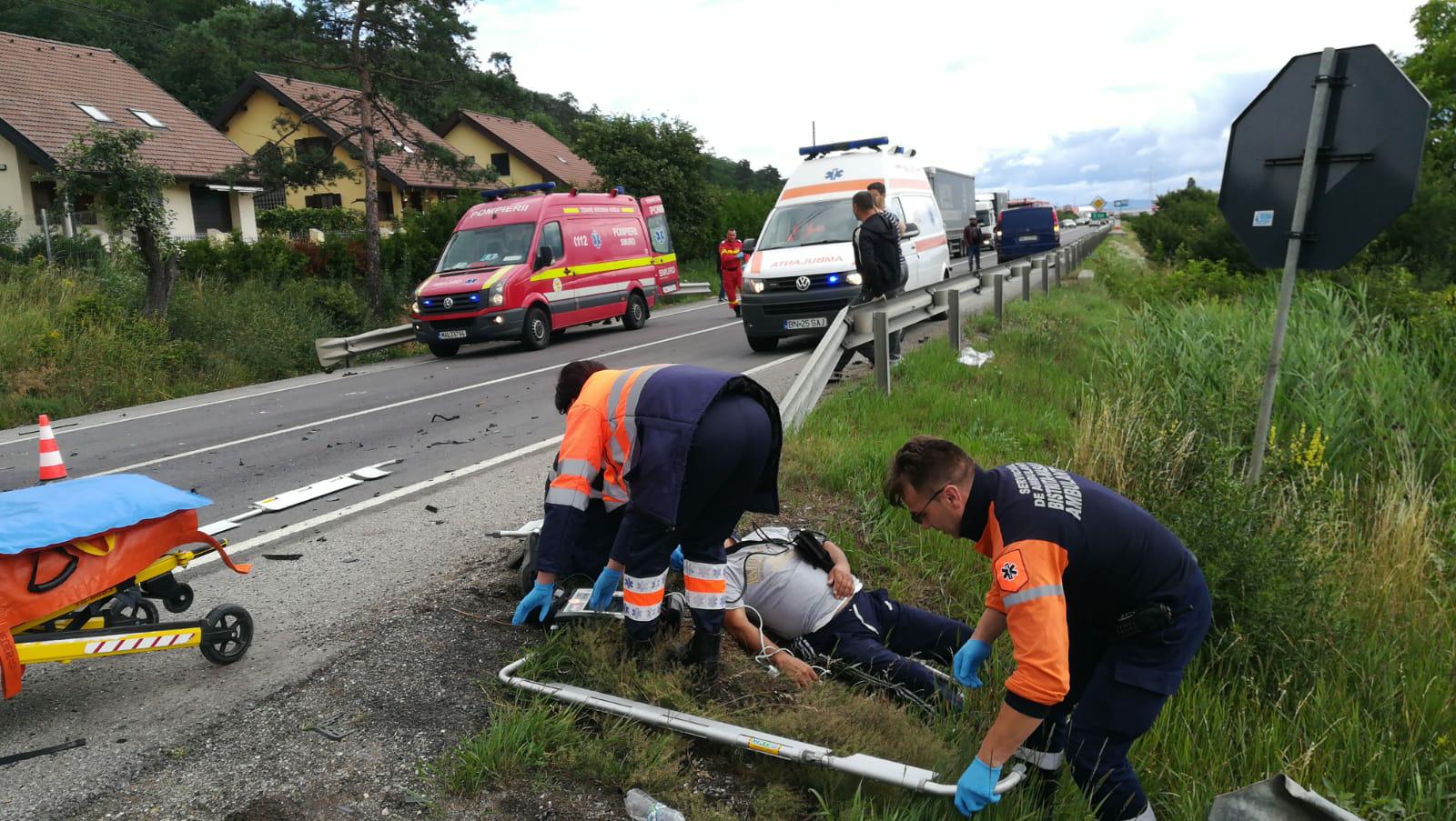 Accidentul a avut loc în urmă cu puțin timp, la intersecția dintre DN15A și DN17, în curbă. Din primele informații rezultă că au fost implicate un autoturism și o autoutilitară. În urma impactului, autoutilitara a ajuns în șanțul de pe marginea drumlui.