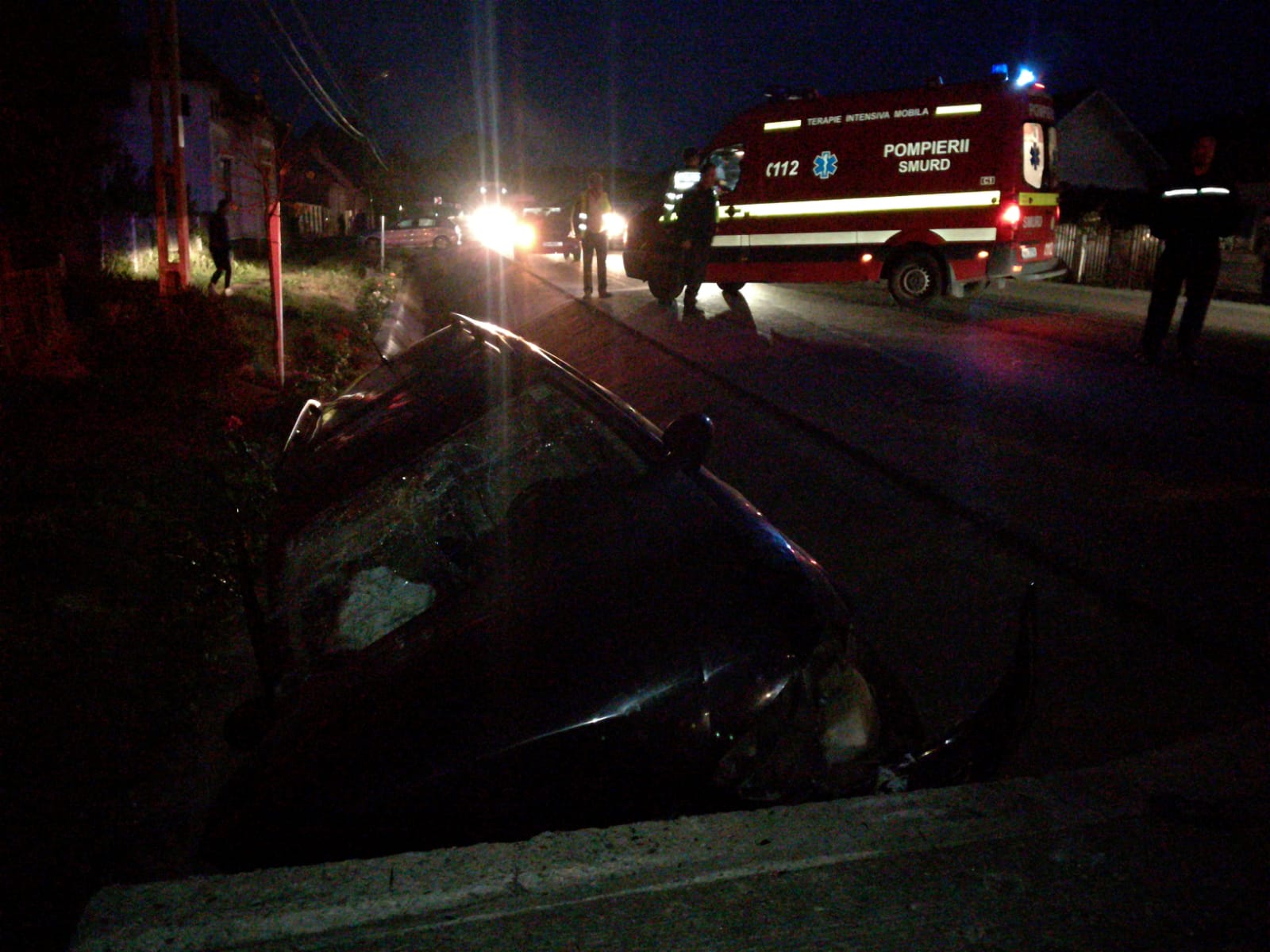 Accidentul s-a produs în această seară, pe DN17, în localitatea Livezile. Se pare că șoferul unui autoturism a pierdut controlul volanului și a ajuns cu mașina în șanțul de pe marginea drumului, unde a lovit un cap de pod.