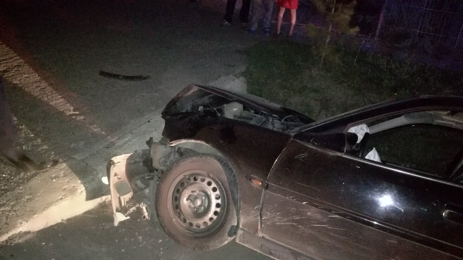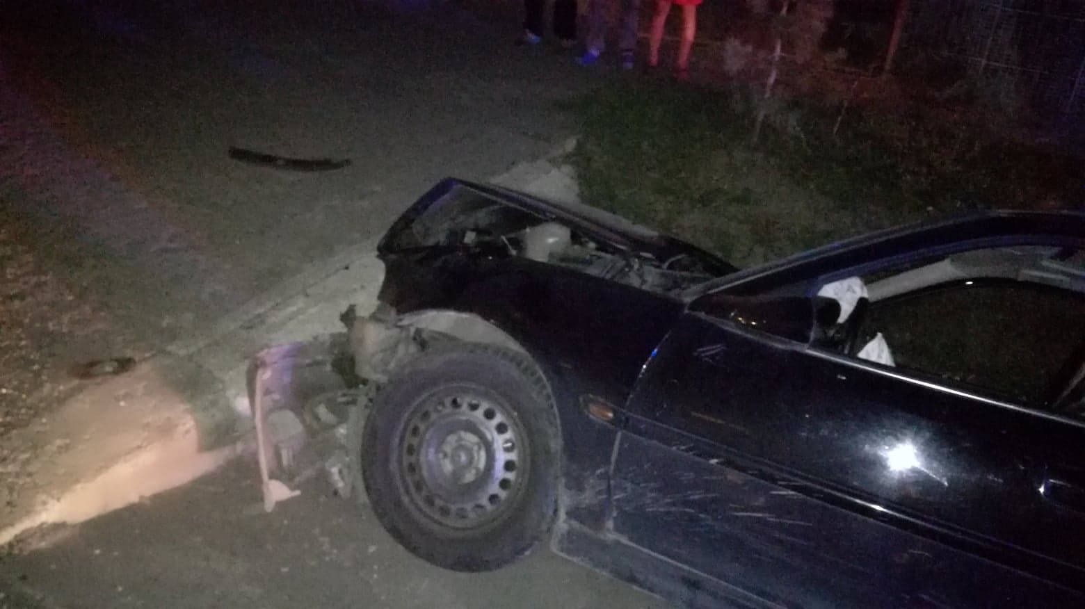 FOTO – Accident rutier în Livezile, produs de un șofer băut! Acesta a intrat cu mașina într-un cap de pod