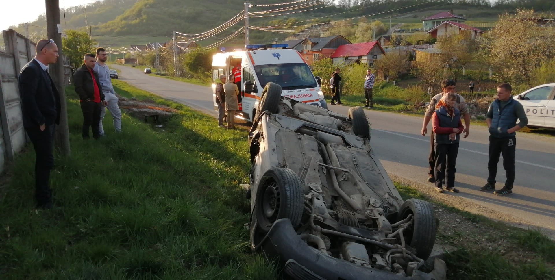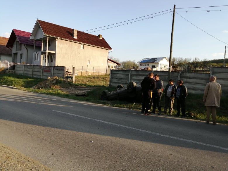 În urma impactului, autoturismul care circula regulamentar a fost învârtit pe șosea și s-a răsturnat în șanțul de pe marginea drumului. În interior se aflau șoferul și un pasager.