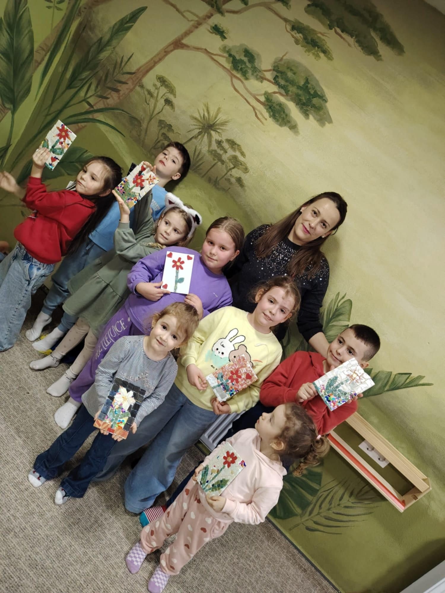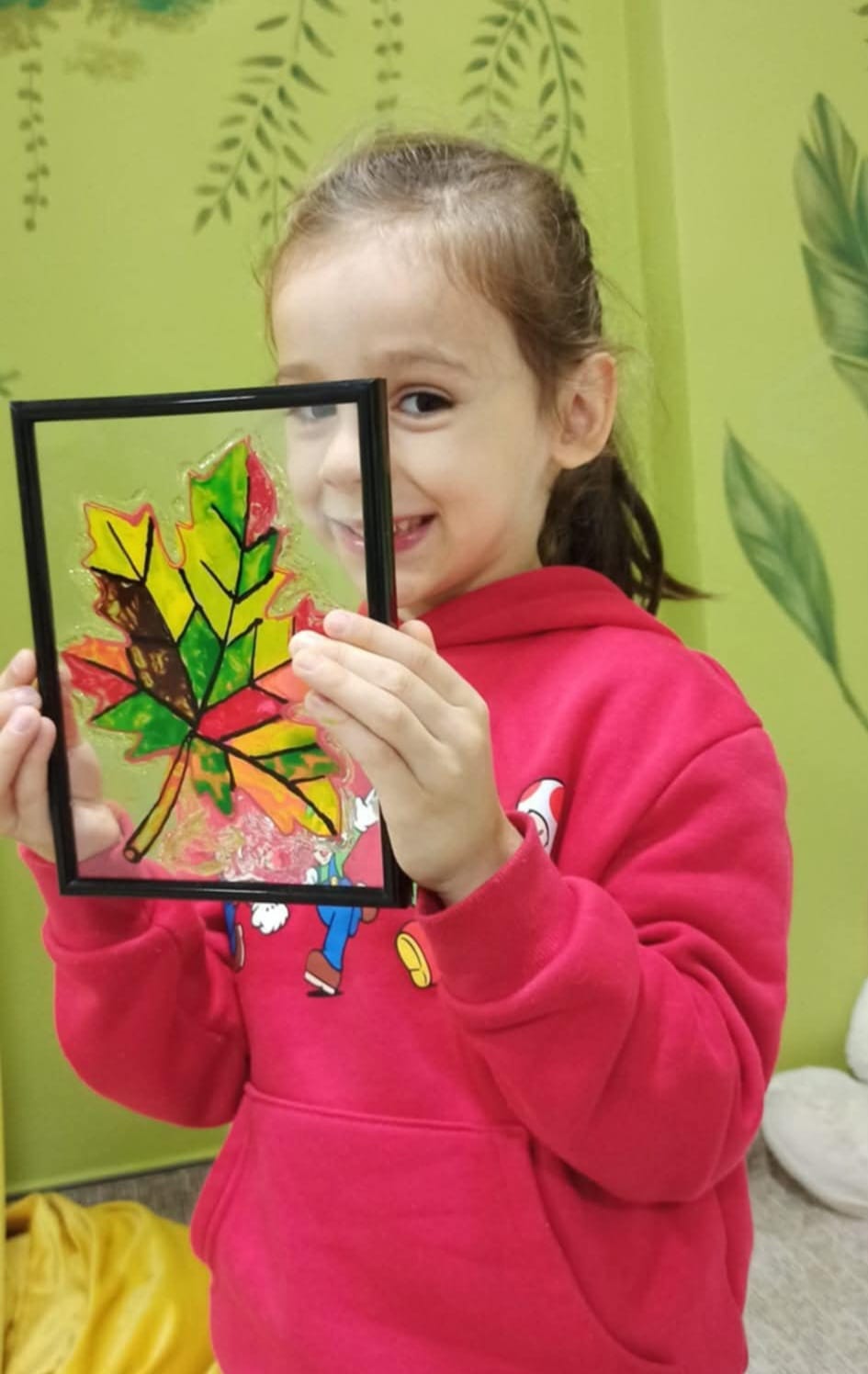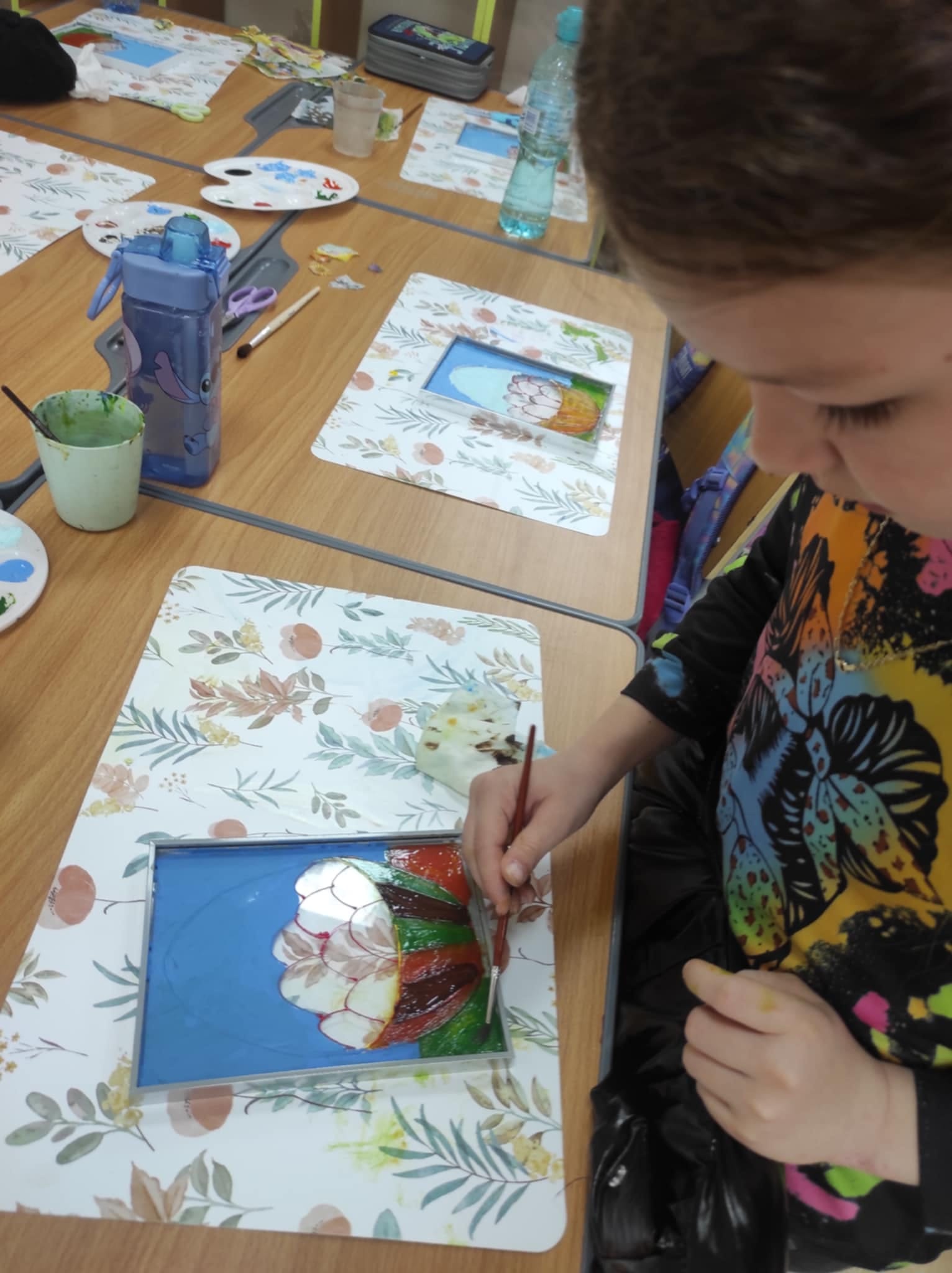 Aici, Alexandra susține și ateliere de pictură, inclusiv pe sticlă, pentru copii, ghidându-i, pas cu pas, să realizeze și lucrări din mozaic.