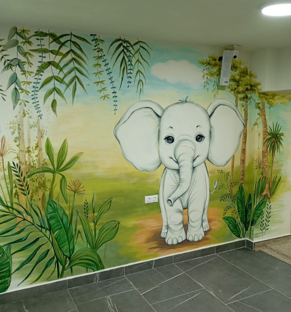 Momentan lucrez la Elefantul Alb, unde mi-am dedicat ultimul an acestui spațiu de joacă pentru copii. Am pictat pereții în culori calde, plăcute, avându-l în centru pe Elefantul Alb – totul se învârte în jurul lui.
