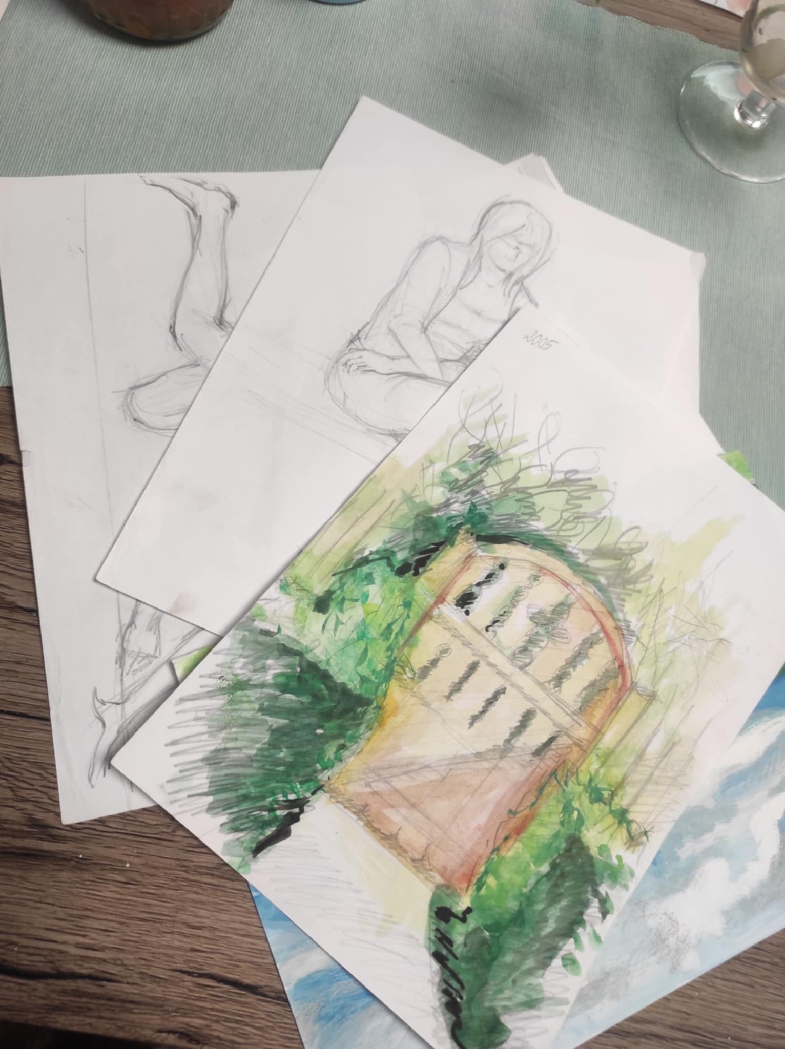 Iar mai apoi acasă primul pantof cu toc care mi-a ieșit frumos și eram așa bucuroasă… Am continuat apoi cu portrete, semiprofil, le desenam în caietele vechi ale mamei mele de când era ea la școală, peste lecțiile de matematică și chimie.