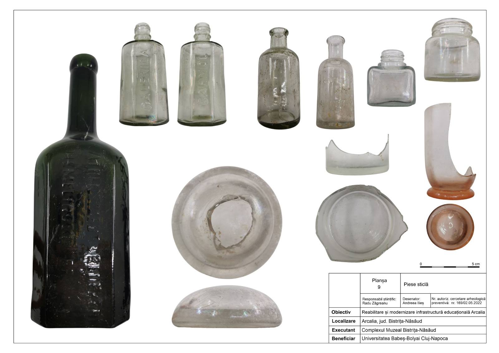 Din acest context au fost recuperate numeroase fragmente și obiecte din sticlă. E vorba în special de pahare și sticle aparținând unor recipiente cu conținut farmaceutic. Ceea ce sugerează că respectiva clădire ar fi avut funcția de depozit.