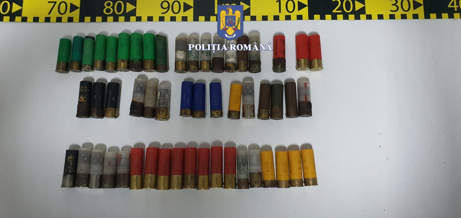 Două arme ale bărbatului de 56 de ani arestat și 56 de cartușe au fost găsite pe câmp, în localitatea Perișor. Polițiștii le-au găsit în timpul nopții de 17 februarie.