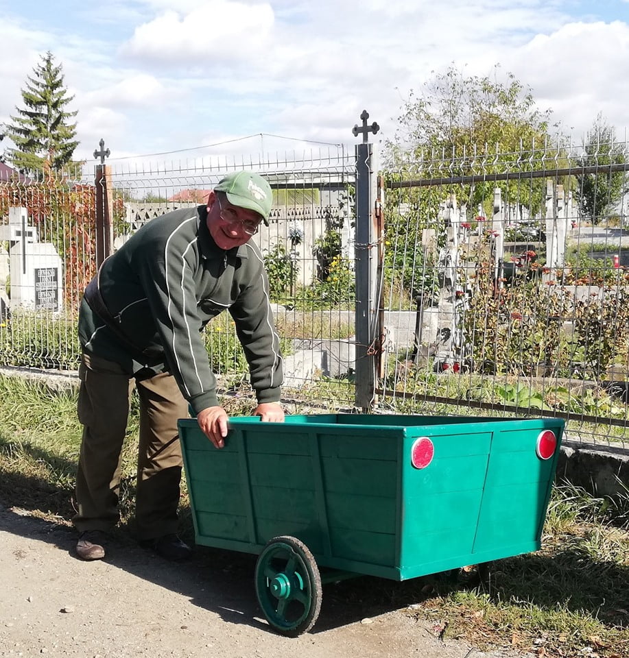 Căruciorul verde al bistrițeanului Attila Szocs avea nevoie de reparații. Din fericire, există oameni frumoși care știu face pe alții fericiți. Căruciorul a fost reparat, înfrumusețat și făcut chiar mai bun decât înainte. Attila e fericit!