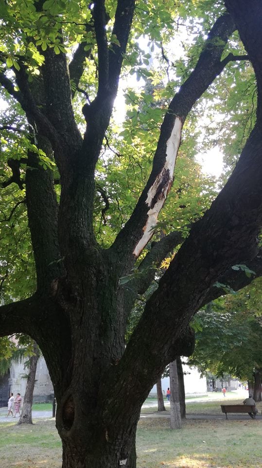„Cauza a fost următoarea: este vorba despre un castan bătrân, care a fost mâncat pe interior de carii. În jurul orei 15:00, creanga a căzut, iar noi am tăiat-o în bucăți mai mici. Vom propune mâine comisiei de tăiere a arborilor să intervină să fie tăiat de tot, aceasta este recomandarea noastră, pentru că reprezintă un pericol pentru trecători”, a explicat pentru Bistrițeanul.ro, Irinel Rad, șeful DSVSU Bistrița.