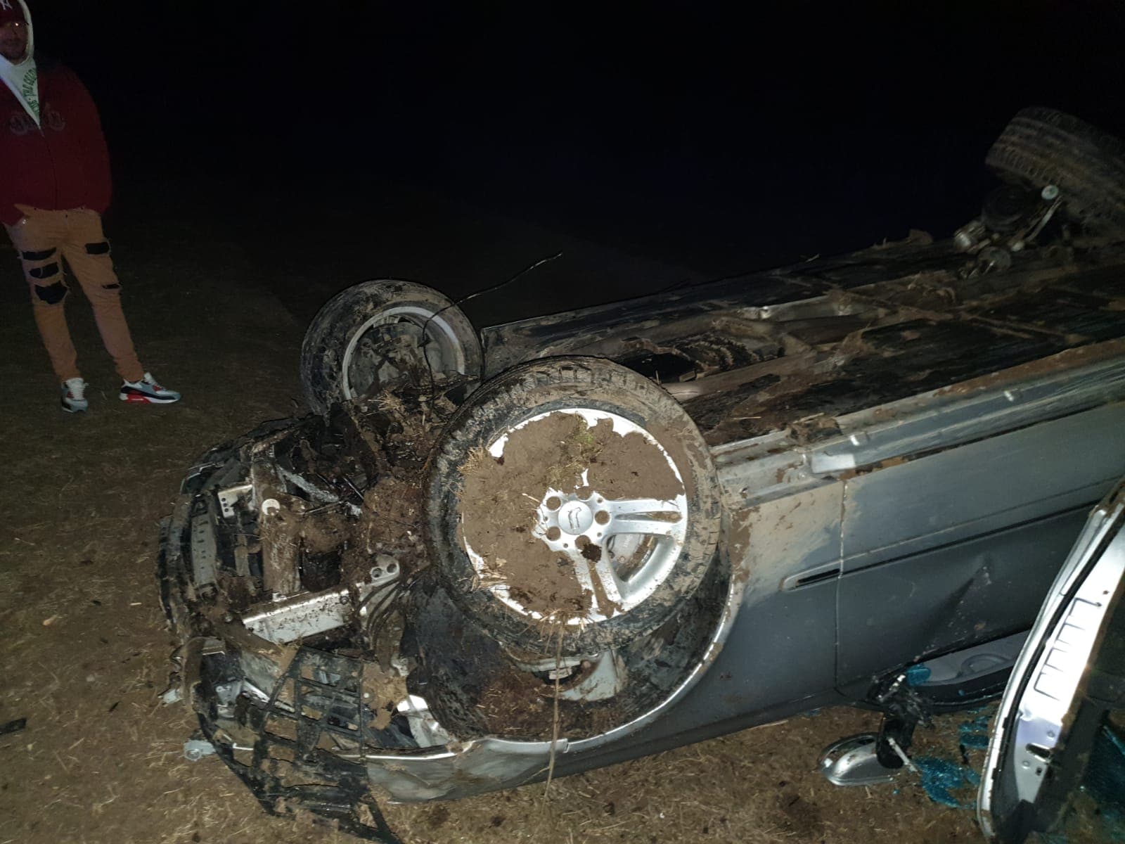 Pompierii, polițiștii și cei de la Ambulanță au intervenit aseară la un accident petrecut în comuna Căianu Mic. O mașină a părăsit partea carosabilă și a ajuns pe câmp, cu roțile-n sus.