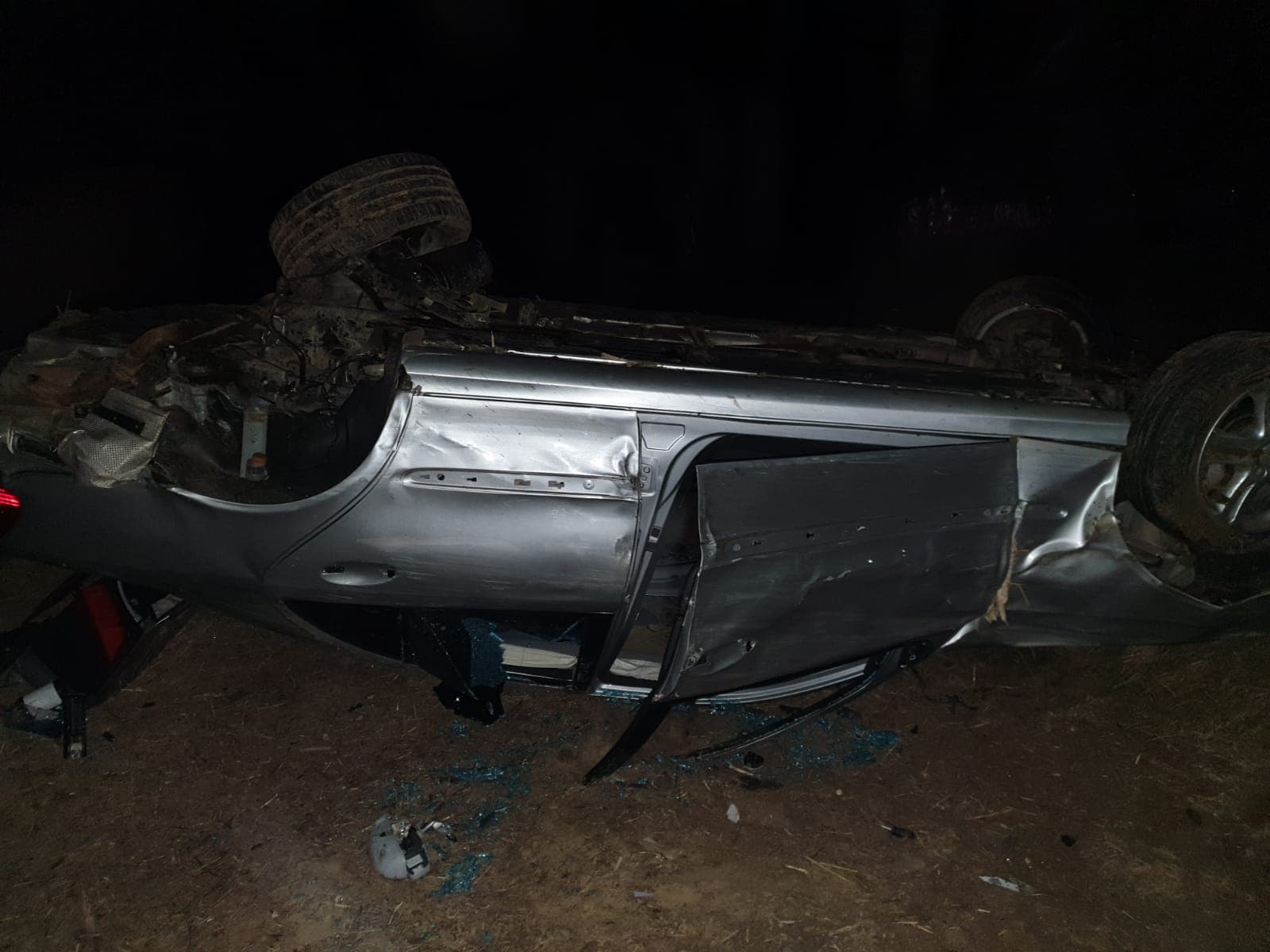 FOTO: Beat fiind, a ajuns cu mașina pe câmp, cu roțile-n sus