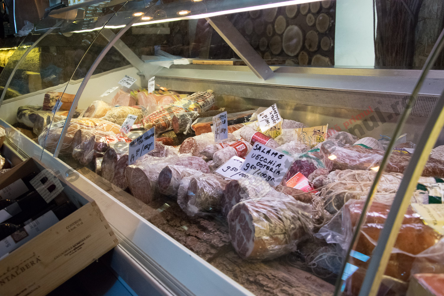 La intrarea în local te învăluia instantaneu un miros îmbietor de carne proaspătă și brânzeturi care mai de care mai bune. Apoi, pe platouri frumos aranjate, erau expuse bunătăți pentru a fi gustate.