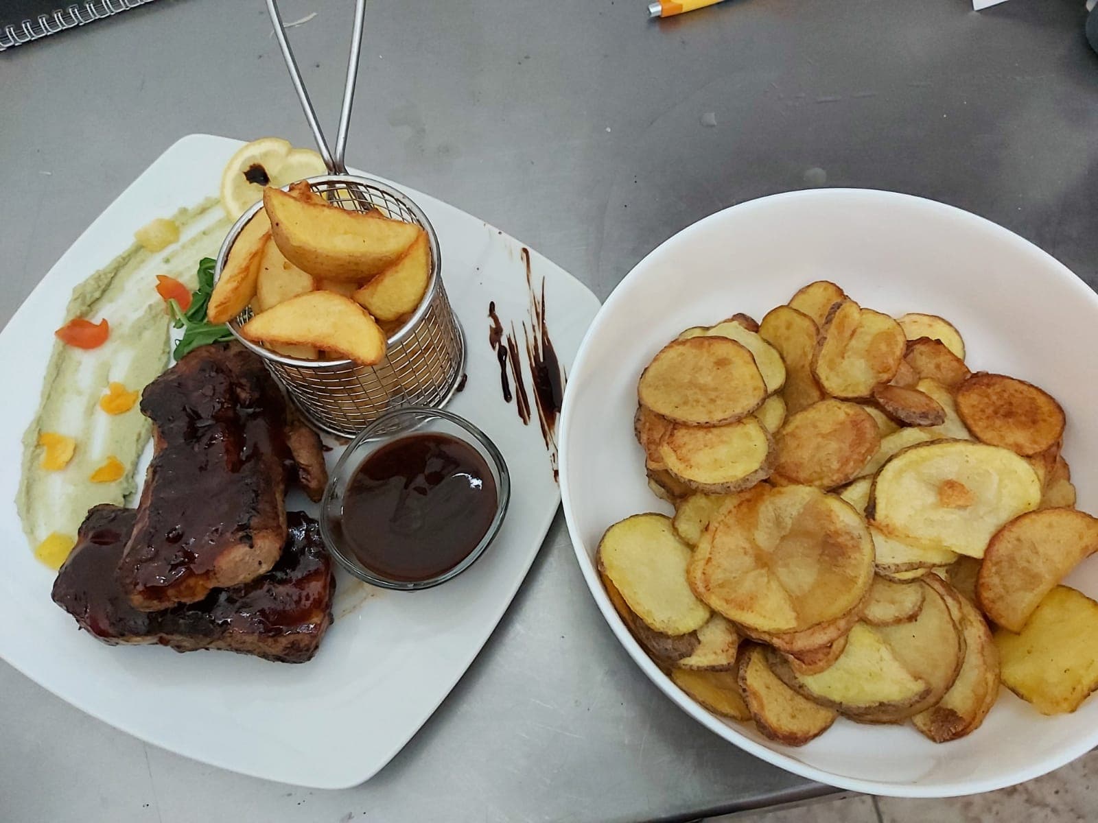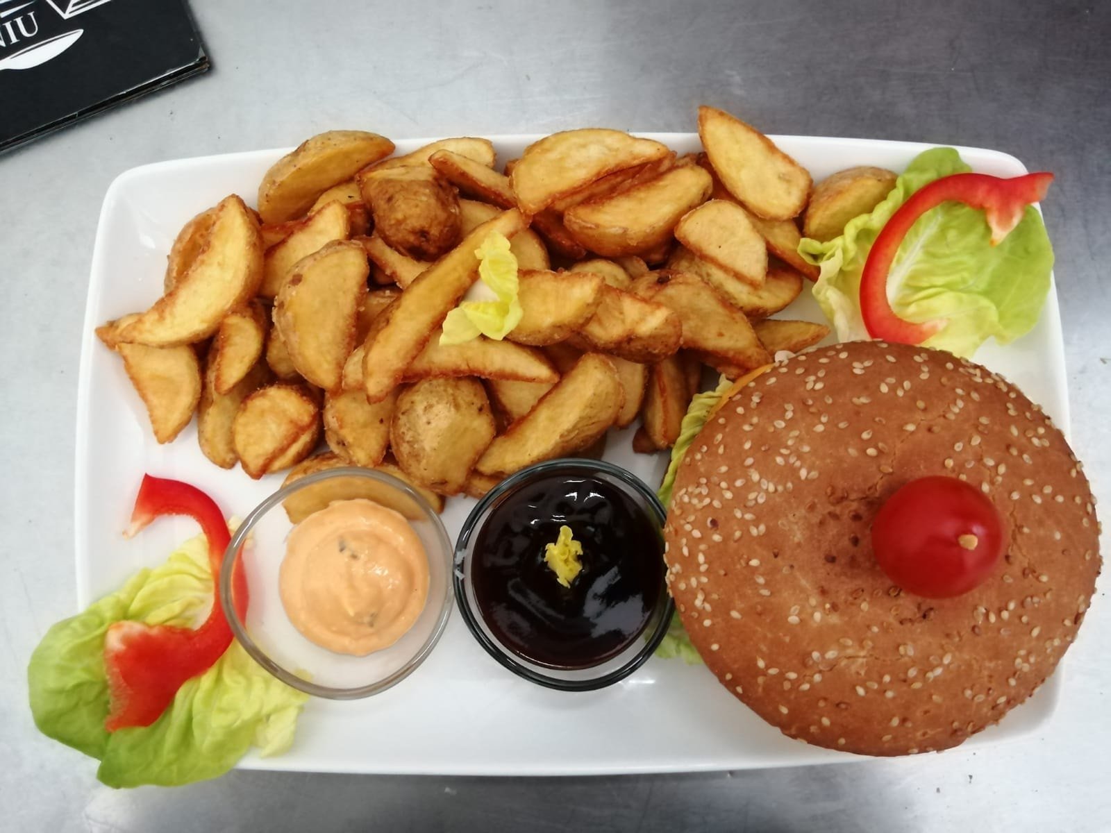 La prânz puteți încerca ceva nou, cum ar fi o supă cremă, pastele sau risotto cu fructe de mare (pe care le puteți găsi de acum și în alte preparate din meniu) sau mușchiul de vită sau porc, gătit și servit după o rețetă unică, ori coastele bine rumenite și bune de te lingi pe degete. La orice oră din zi sau din noapte e binevenită o pizza, una generoasă, umplută cu tot dragul și cu cele mai bune ingrediente, după gustul vostru. Iar la desert, dacă vreți să încercați ceva special, ce nu găsiți oriunde, ascultați-ne și cereți o Cremă catalană. Dacă vă plac clătitele și ciocolata, cereți musai pancakes cu Nutella. Pentru cei care țin diete sau vor un meniu mai light, consultați meniul și fie că e vorba de mic dejun, prânz sau cină, sigur veți găsi ceva cu puține calorii și pe gustul vostru.