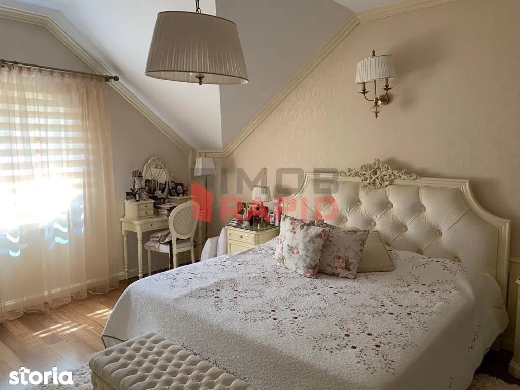 De asemenea, casa are și două garaje, iar curtea este amenajată cu pavaj și gazon. Gardul înalt oferă intimitatea dorită noilor proprietari.