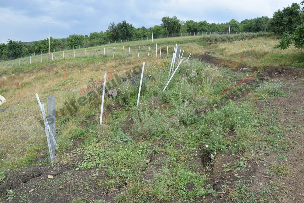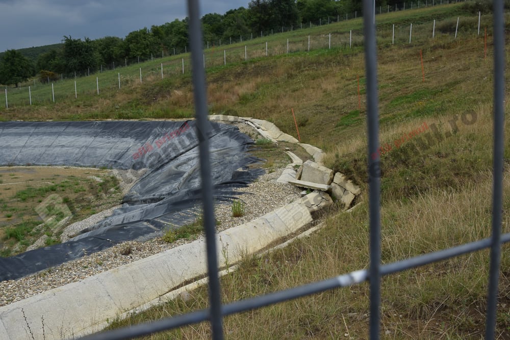 Pe zeci de metri terenul o ia la vale, mutând pur și simplu gardul care împrejmuiește lacul de acumulare.