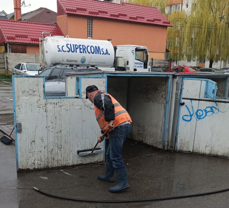 Angajații Supercom derulează în aceste zile o amplă acțiune de igienizare a containerelor pentru deșeuri reziduale din Bistrița.
