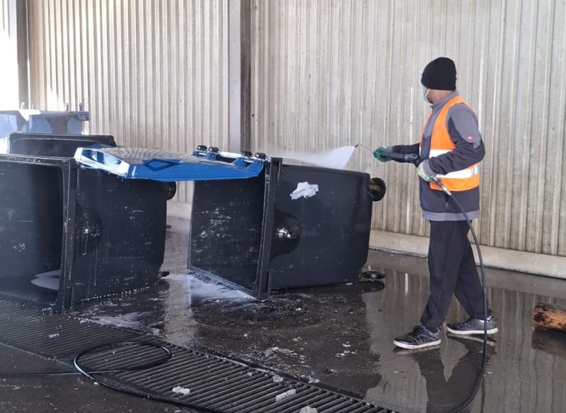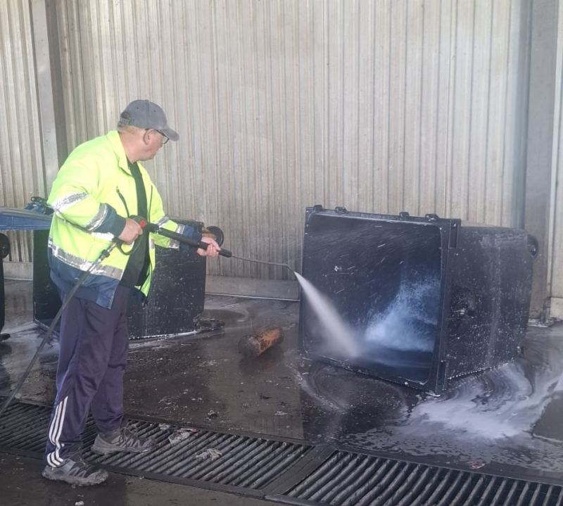 FOTO – Curățenie de Paște, și la Supercom: Se spală containerele pentru deșeuri reziduale din Bistrița