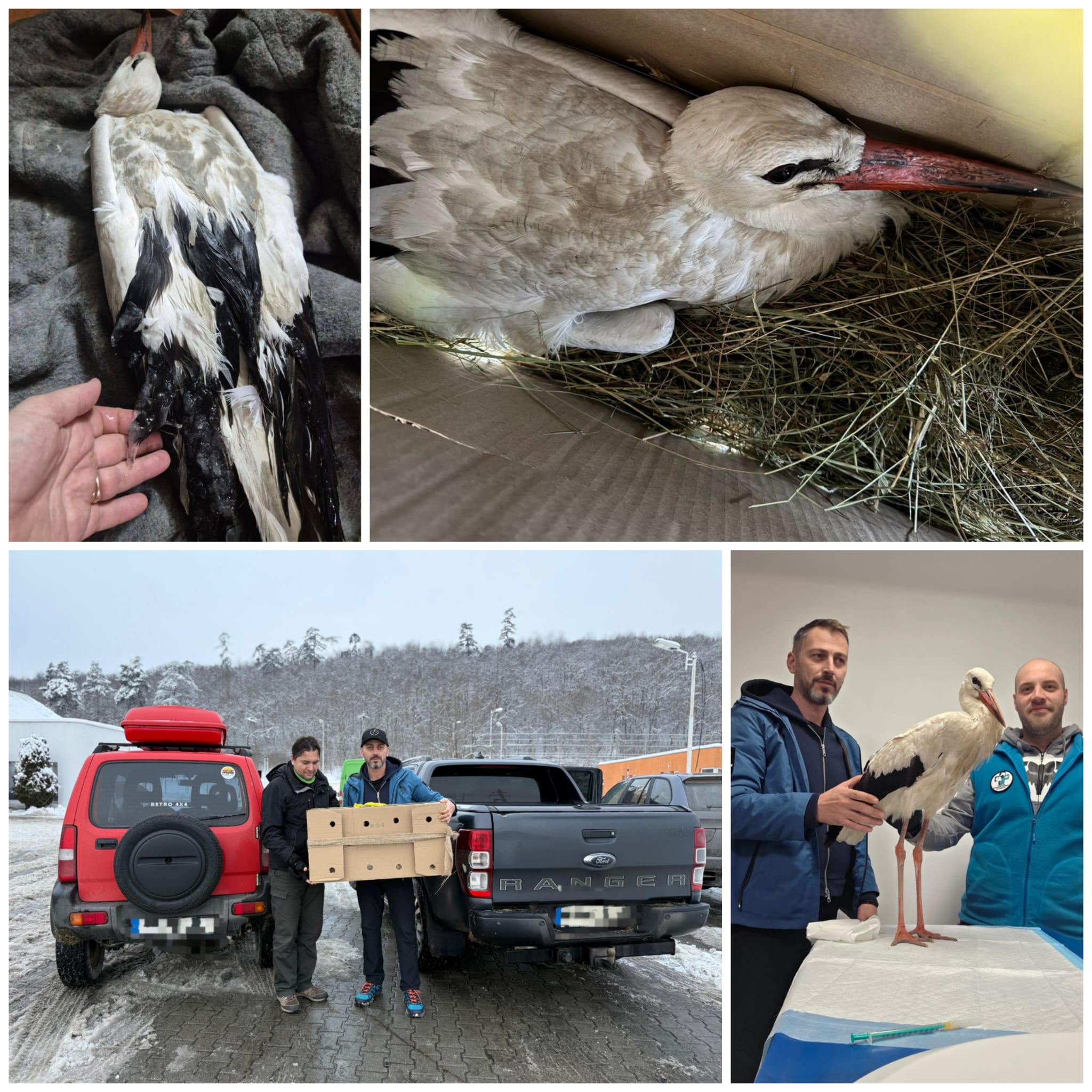 O barză a rămas prinsă între nămeți, zilele trecute, la Șieu. Doamna care a găsit-o, Elena Simionca, a adăpostit-o trei zile, iar datorită biologului Ciprian Samoilă, ajutat de Lucian Mihalache de la Asociația Megafauna din Maramureș, aceasta a ajuns cu bine la Sibiu, la cabinetul veterinar care colaborează cu Asociația Prietenii Berzelor.