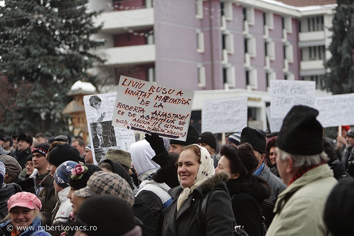 „Am venit cu 20 de oameni să ne exprimăm indignarea și nemulțumirea pentru felul în care an de an se împart banii către primăriile din judet, pentru felul în care Liviu Rusu împarte banii după bunul plac. Pe acest domn nu îl interesează absolut nimic despre comunitățile noastre. (…) Un asemenea om (n.r. Liviu Rusu) ne ignoră, ignoră comunitățile noastre. Pentru ce?! (…) Vrea să fie dictatură, ce vrea să facă acest om?”, spunea Niculae Anghel, primarul de atunci al comunei Coșbuc.