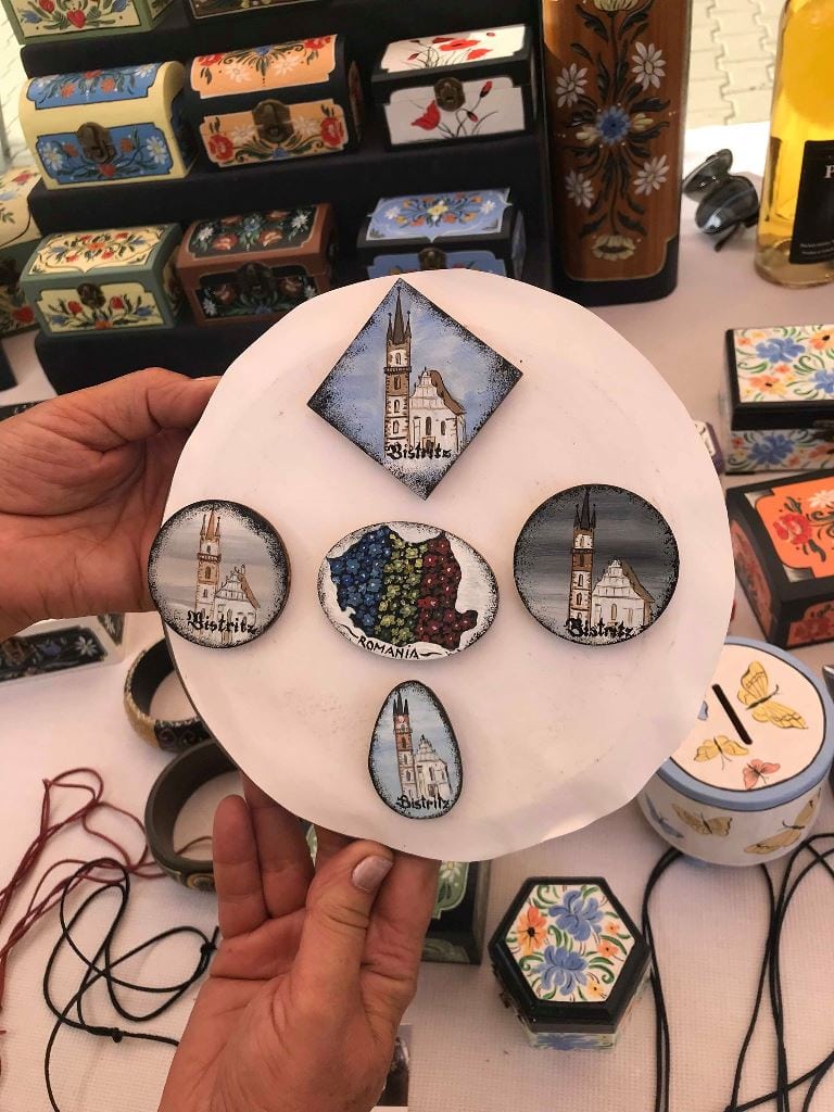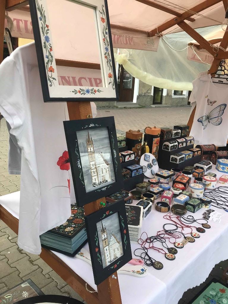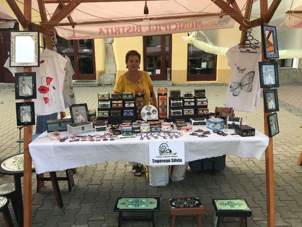 ”La un moment dat am lucrat la cineva care avea un atelier de pictură pe sticlă în Unirea. La început am fost plătită bine, însă între timp lucrurile au decăzut și am putut să ies la o pensie anticipată și am renunțat acolo, după care am rămas acasă crezând că mă pot ocupa de mine. Însă nu am putut să trăiesc fără să pictez sau fără să am o activitate. Am făcut puțin pe ceramică, pentru că aveam câteva văzuțe și acolo am făcut câteva încercări, iar după aceea nici nu mai țin minte cum am început, dar am făcut rost de niște produse din lemn și am început să pictez. Mi-am adus aminte cum mă documentasem eu despre Bistrița, despre sași, despre viața lor, despre ambientul lor. Chiar dacă se pare că au fost un popor mai rece, le-a plăcut foarte mult frumosul. Mi-a atras atenția faptul că aveau lucruri foarte frumos pictate și am încercat să le reproduc. Însă lucrez cu tot felul de modele. Pentru că pot face aproape orice, atunci fac aproape orice.”