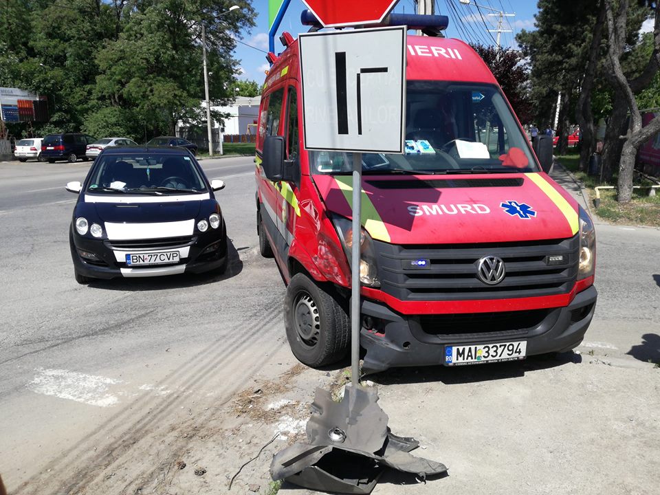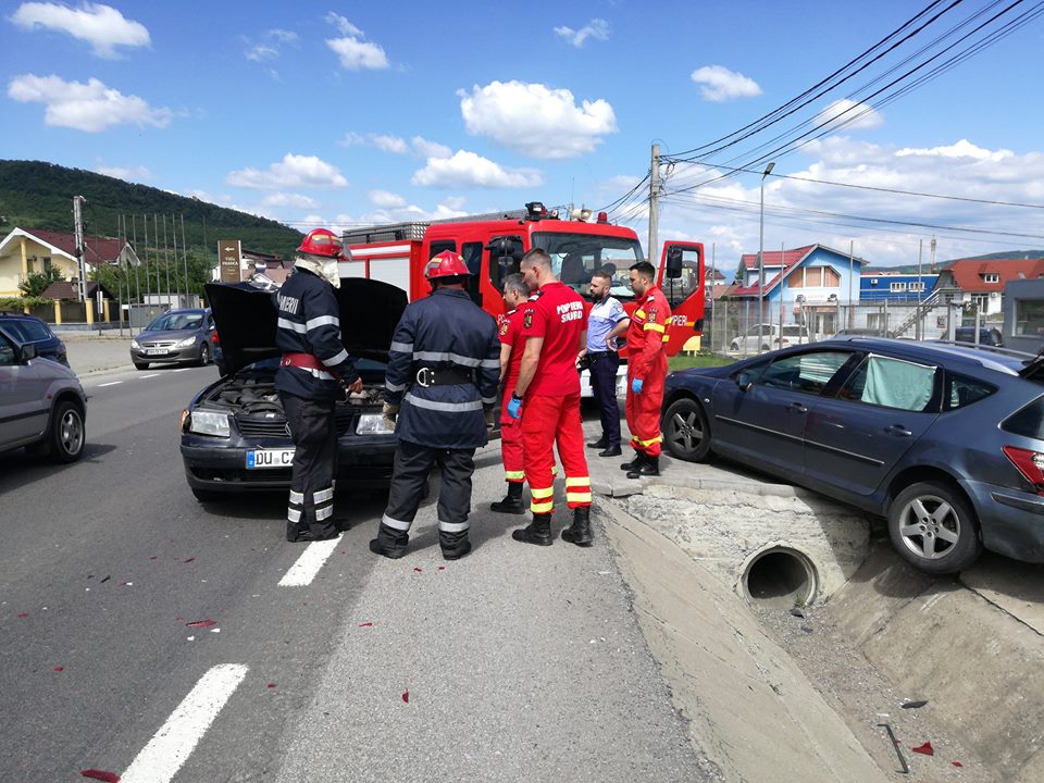 Două accidente au avut loc în mai puțin de 10 minute. Unul a avut loc în Viișoara, iar altul lângă pasarela nouă. Culmea, în cel de-al doilea accident a fost implicată tocmai autospeciala care se îndrepta spre primul accident.
