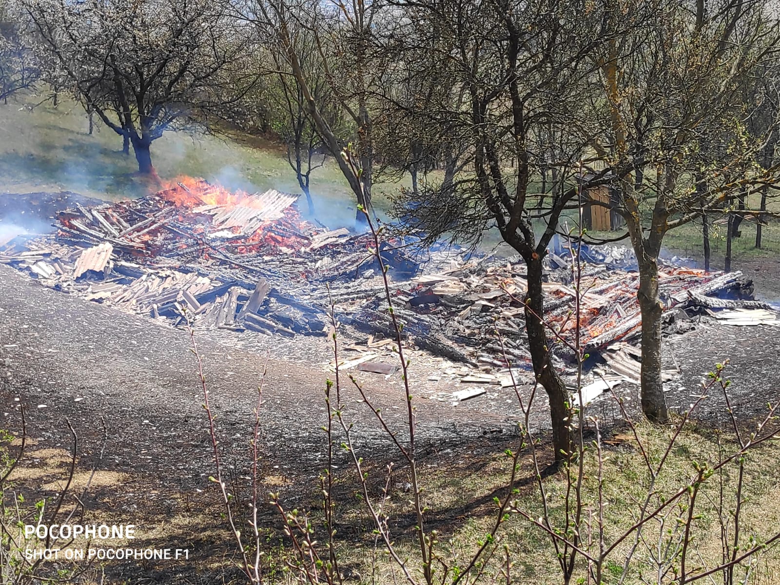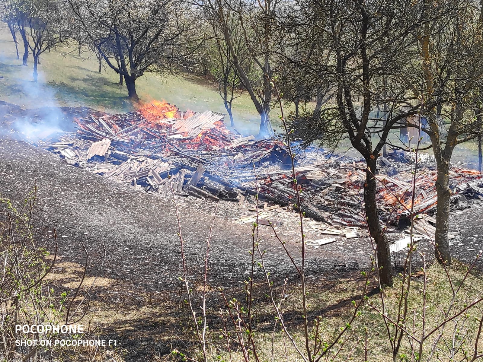 Evenimentul a fost provocat în urma unui incendiu de vegetație, focul fiind scăpat de sub control din cauza vântului. Din fericire nu au fost victime.