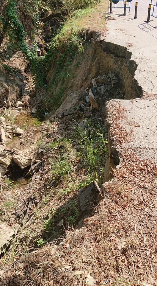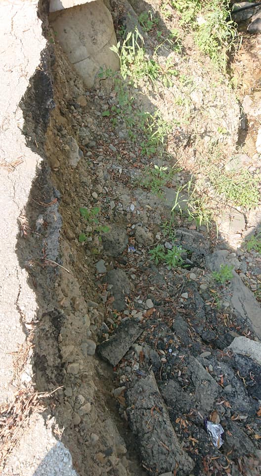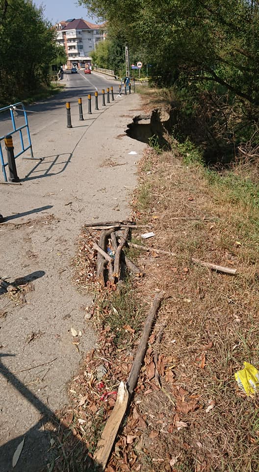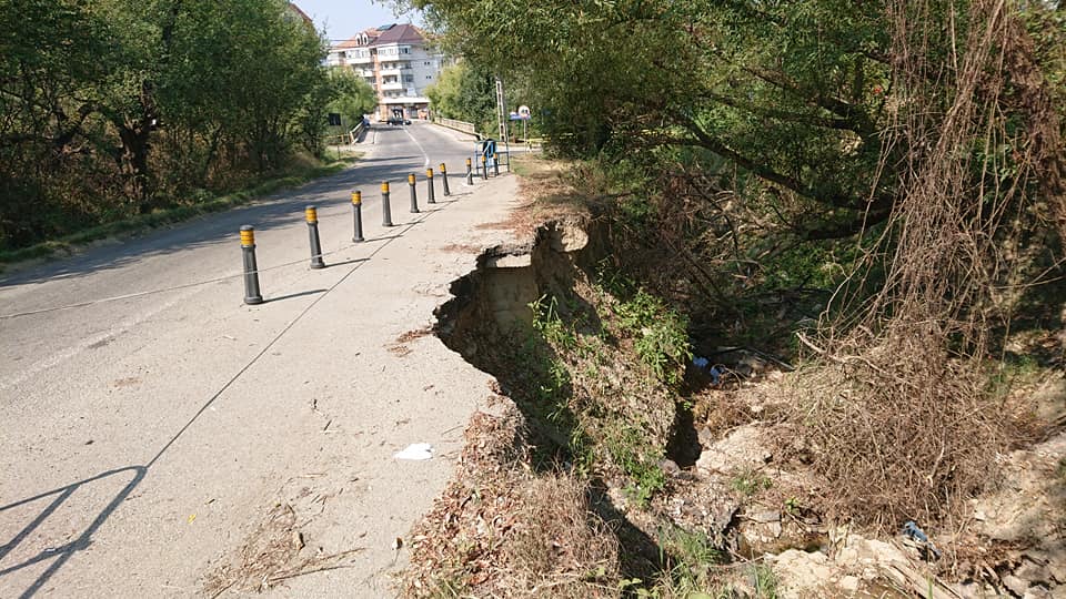 Oricum, până vin banii de la stat, pentru a evita o nenorocire, autoritățile locale au montat doar niște stâlpi, deși drumul se surpă de la o zi la alta, lăsând un gol din ce în ce mai mare.
