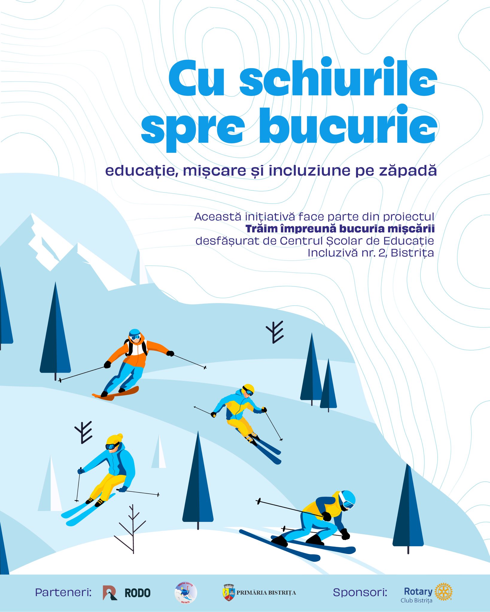 Aveți echipamente de schi aflate în stare bună – schiuri, clăpari, geci, pantaloni, căști, mănuși și accesorii, pe care nu le mai folosiți? Le puteți dărui copilașilor de la CȘEI nr. 2 Bistrița și să le faceți astfel o mare bucurie. Aceștia pot avea parte de o nouă experiență – schiul, în cadrul proiectului „Trăim împreună bucuria mișcării”.