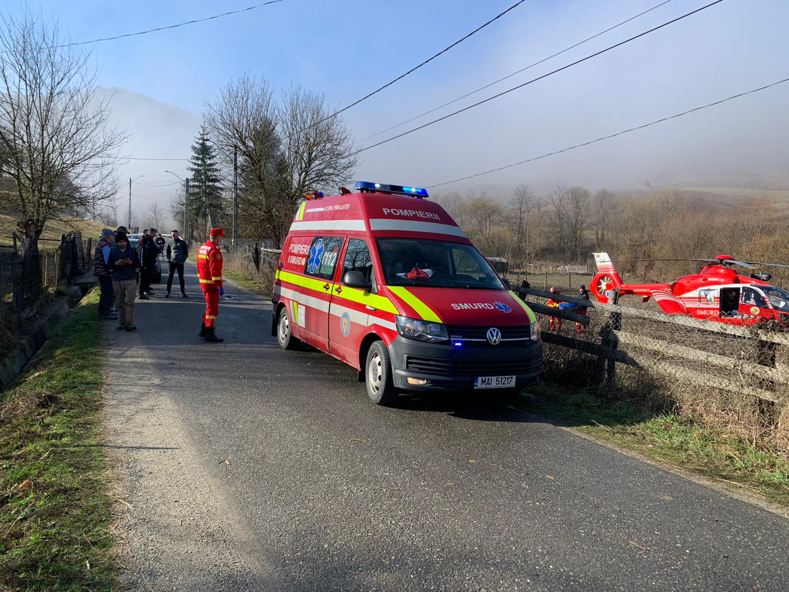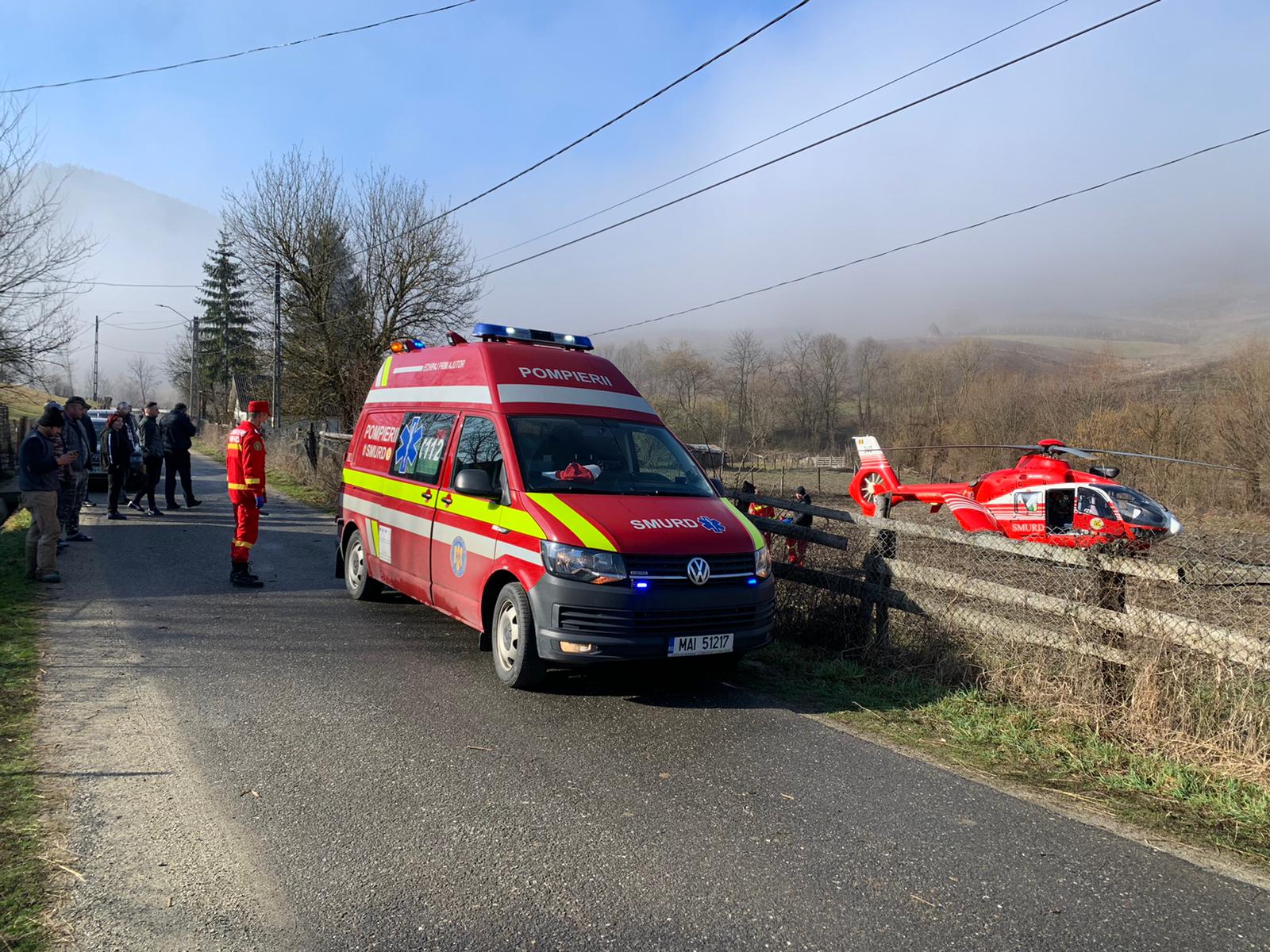 Întrucât tânărul este în stare de semiconștiență, a fost solicitat elicopterul SMURD în vederea transportarii la o Clinică de specialitate.