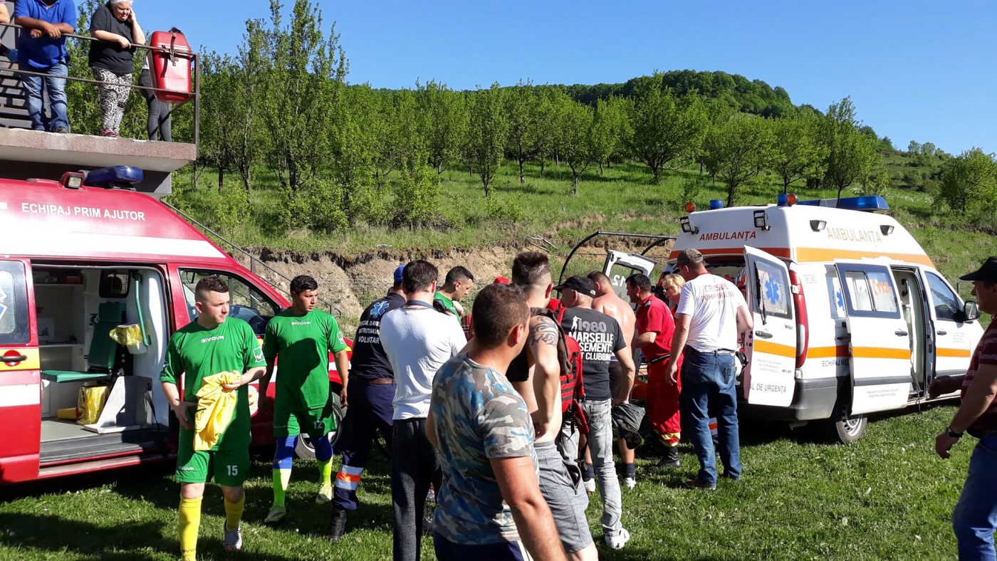 Incidentul s-a produs astăzi, în timpul unui meci de liga a V-a, în localitatea Negrilești. Victima este un bărbat de 70 de ani, din Arcalia, care însoțea echipa oaspete.